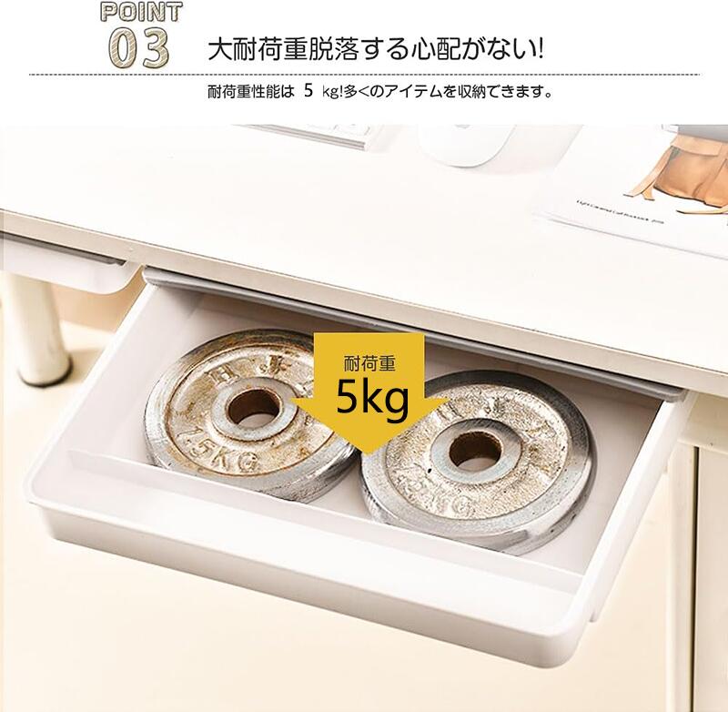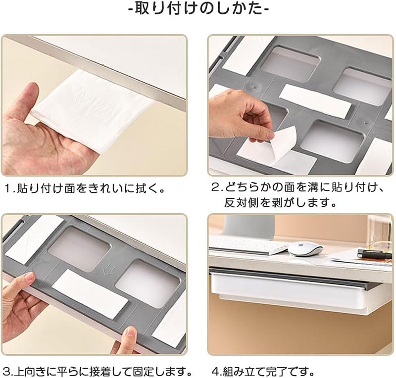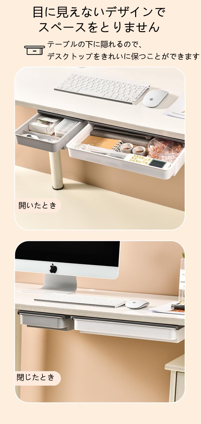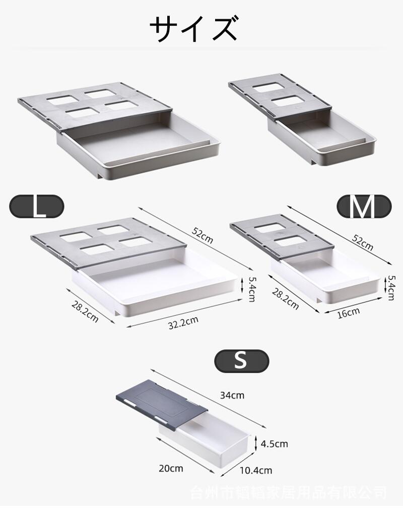 デスク下 引き出し 後付け 収納ボック ホワイト グレー ホワイトグレー S M L