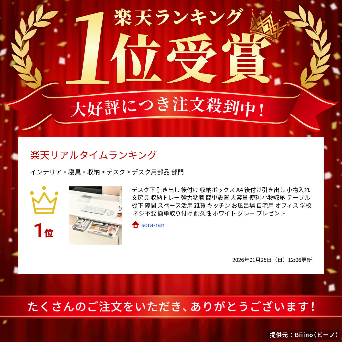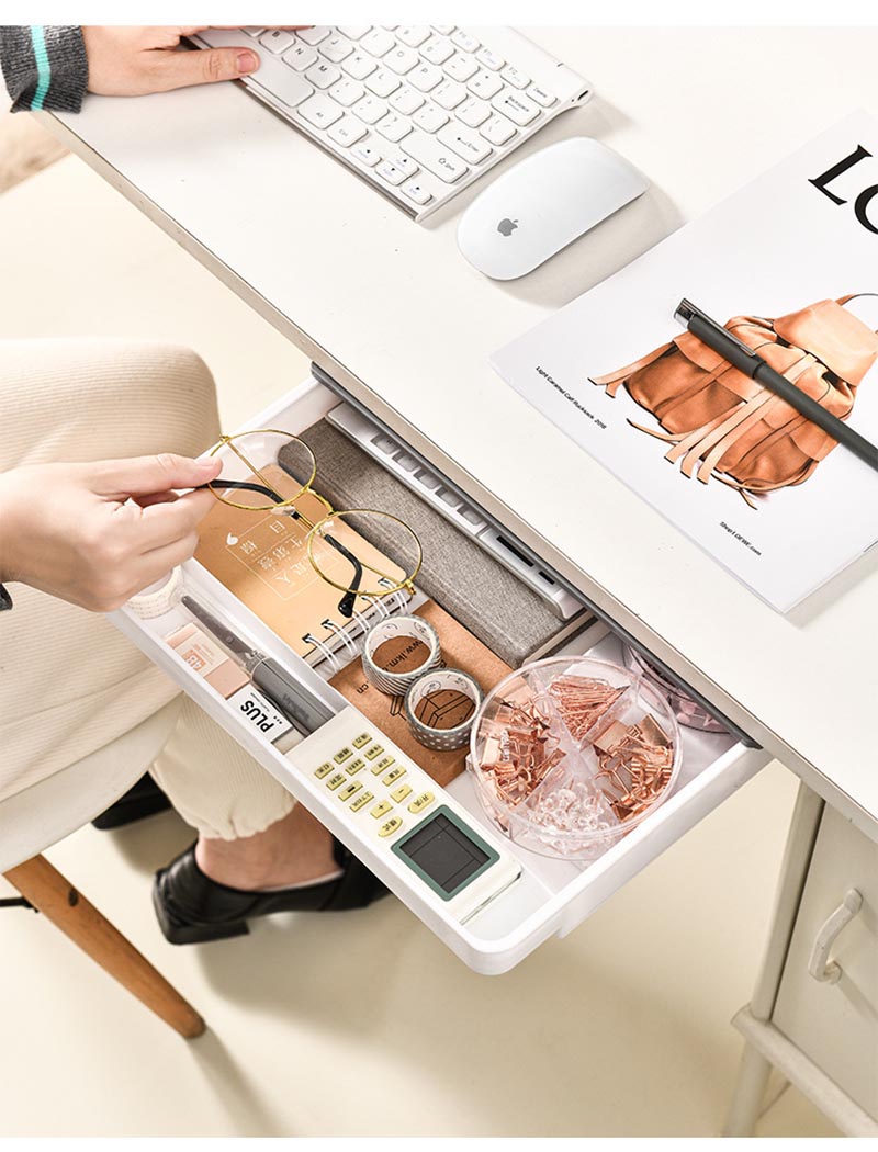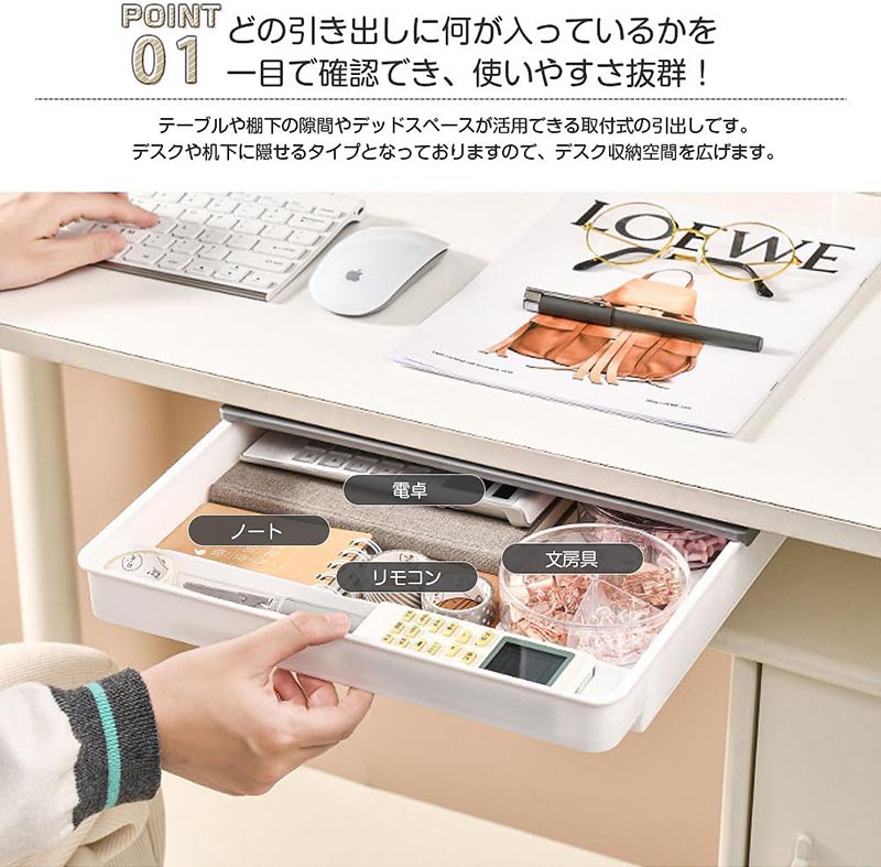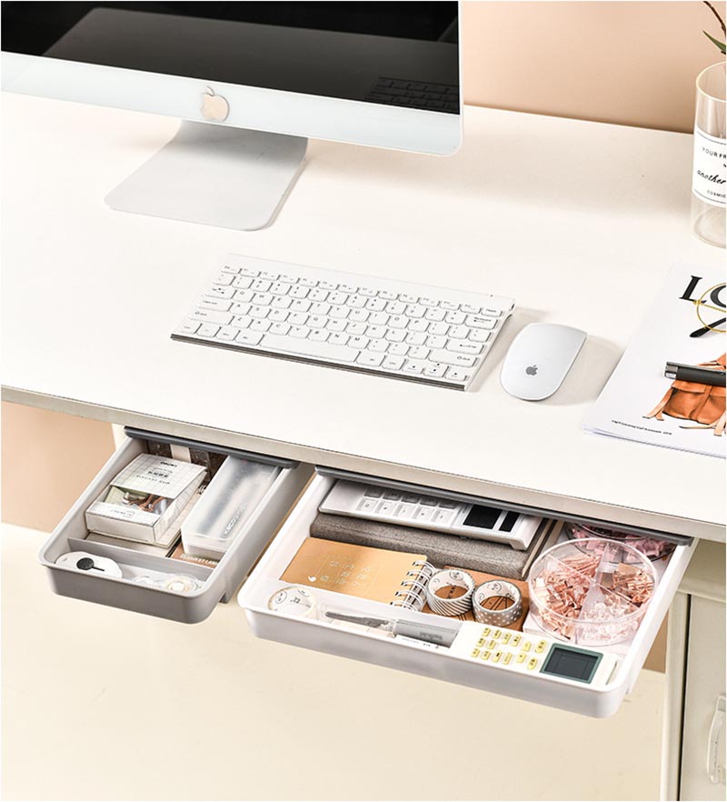 デスク下 引き出し 後付け 収納ボック ホワイト グレー ホワイトグレー S M L
