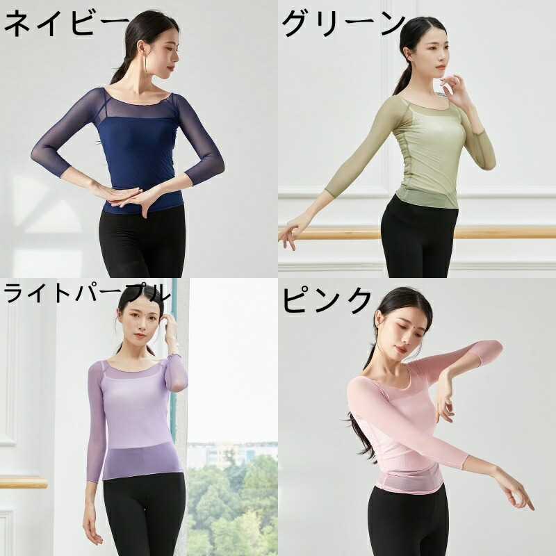 バレエ メッシュ tシャツ トップス レッド ブルー ホワイト グリーン ピンク パープル ライトパープル ネイビー ブラック ライトグリーン S M L XL 2XL 3XL
