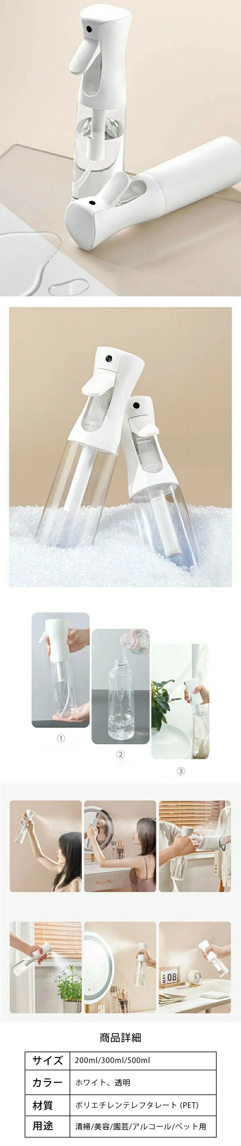 霧吹き 200ml 300ml 500 透明 ホワイト 200ml 300ml 500ml