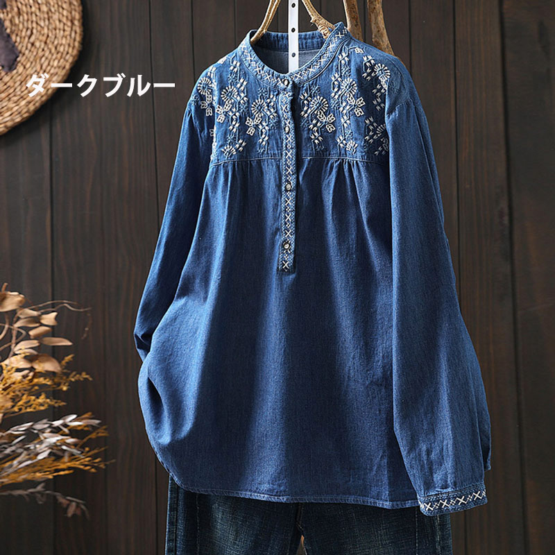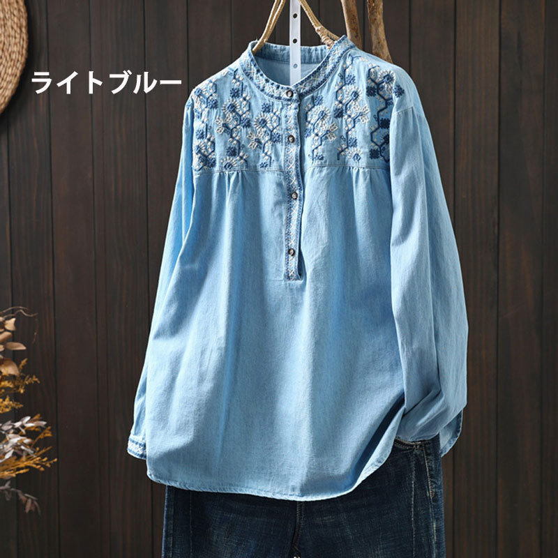 デニムシャツ チュニック レディース レディースファッション 新作 ライトブルー ダークブルー