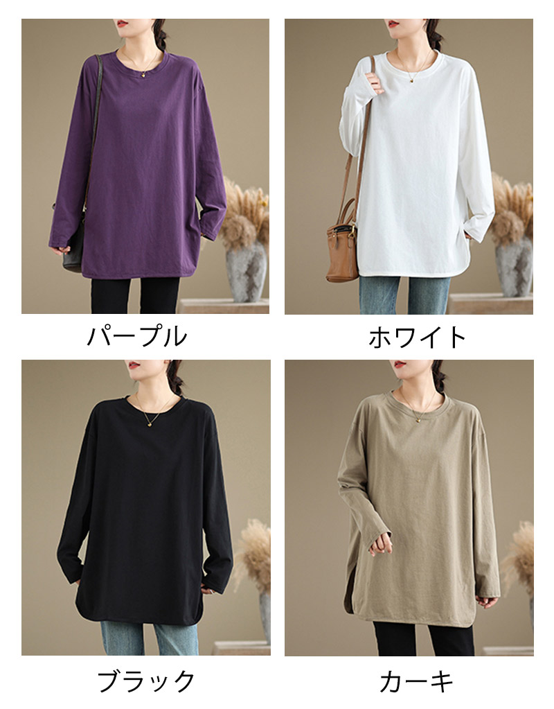 チュニック Tシャツ レディース ロン レディースファッション 早い者勝ち パープル ホワイト ブラック カーキ