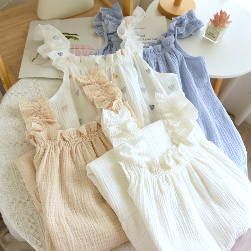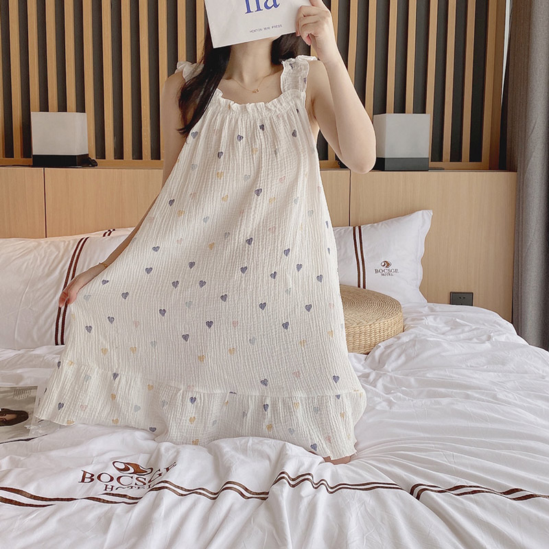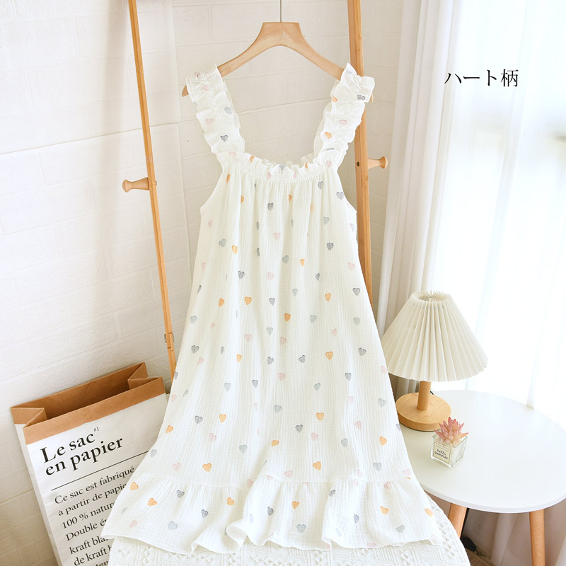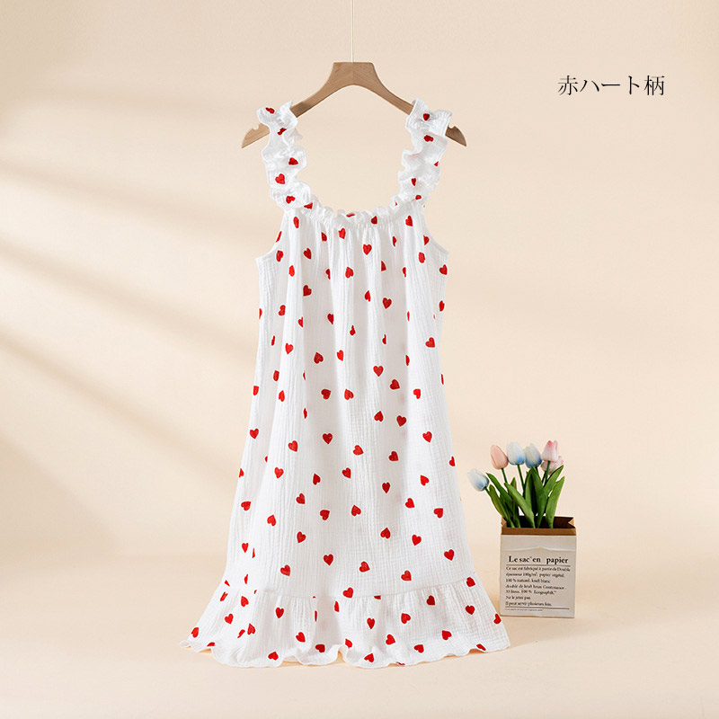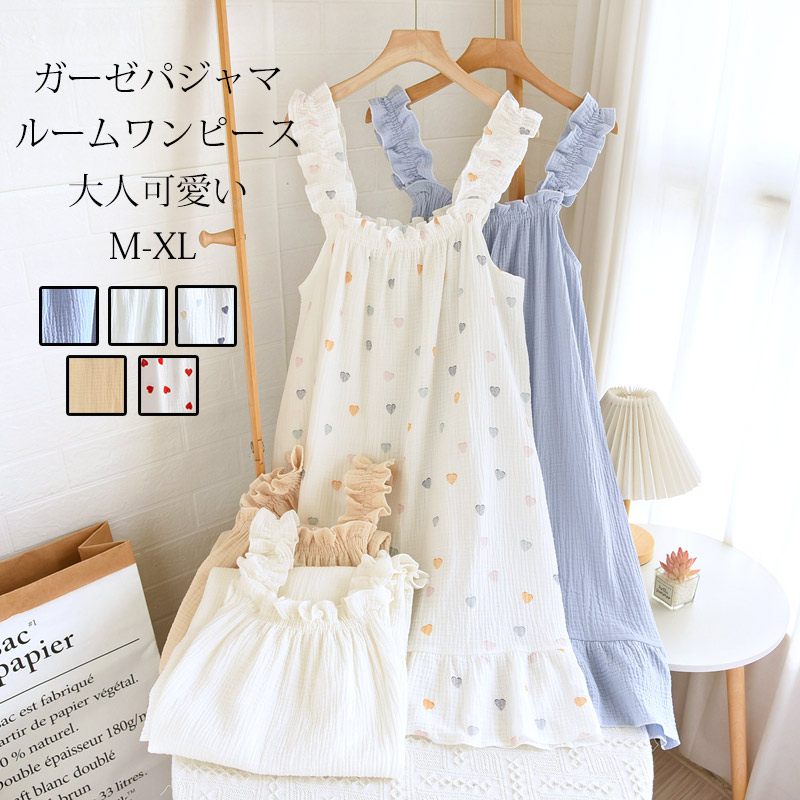 ルームウェア ワンピース レディース M L XL ホワイト ブルー ベージュ ハート柄 赤ハート柄