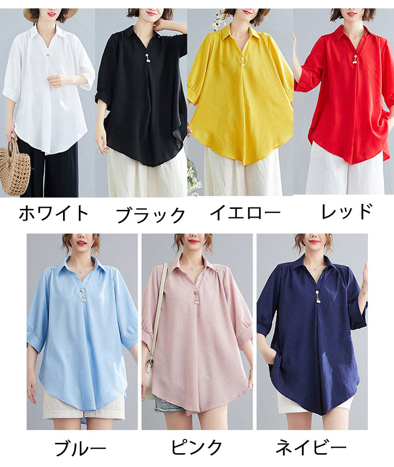 春夏人気再販 チュニック ブラウス 半 チュニック 続々入荷中 ホワイト ブラック ネイビー イエロー レッド ブルー ピンク M L XL 2XL