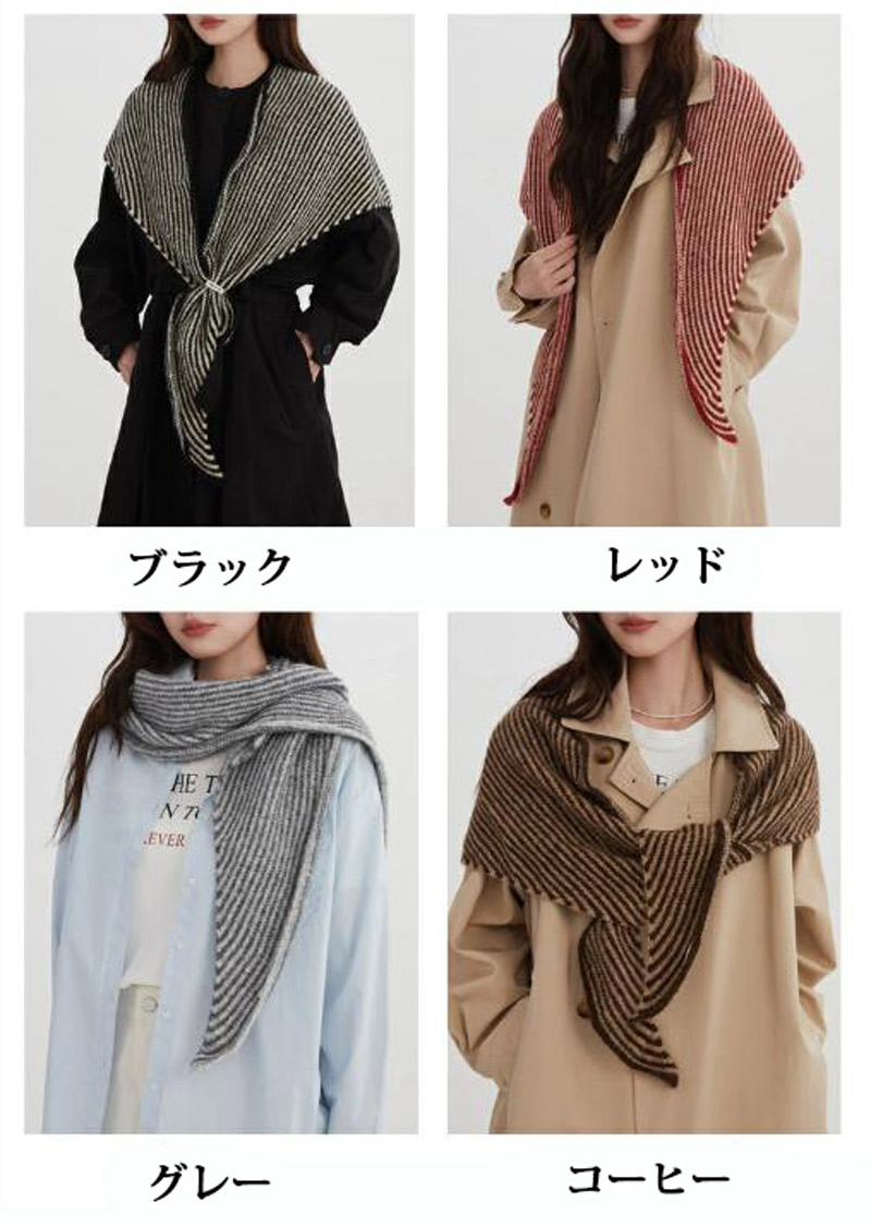 ストール レディース ストライプ柄 ニ バッグ 小物 ブランド雑貨 通販 ブラック レッド グレー コーヒー グリーン ブラウン ピンク イエロー