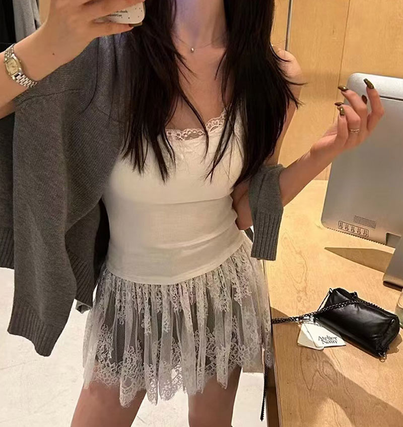 キャミソール レース レイヤード レイ トップス キャミソール 特集 小さめサイズ 大きめサイズ ホワイト ブラック