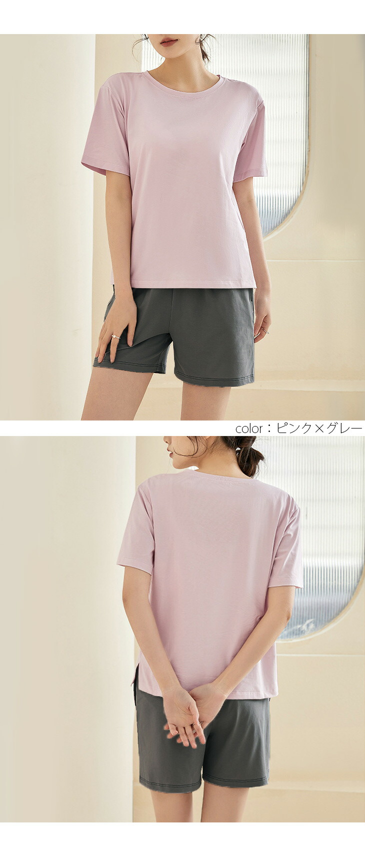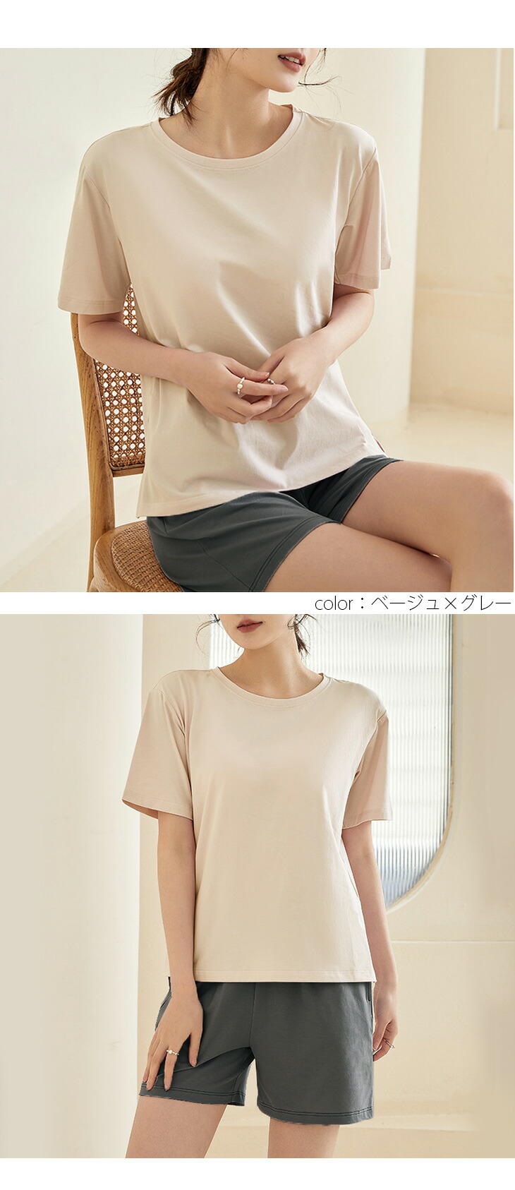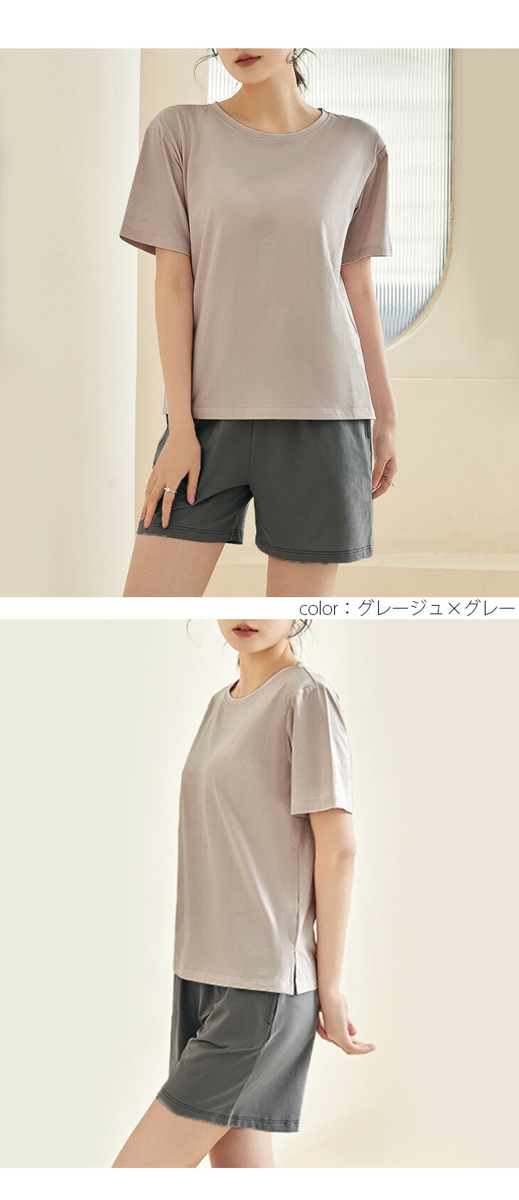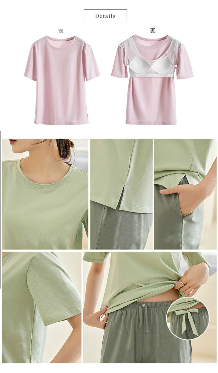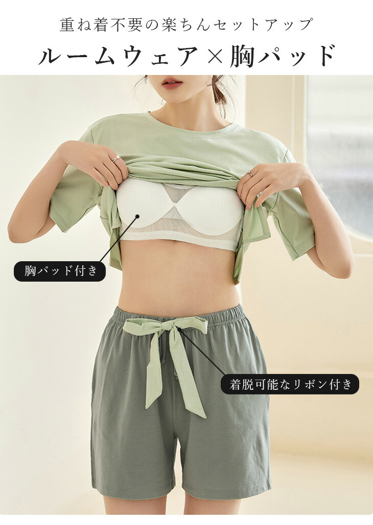 カップ付き ルームウェア セットアップ レディースファッション 超目玉商品 ベージュ×グレー ピンク×グレー グレージュ×グレー グリーン ラベンダー M(1) L(1) XL(1)