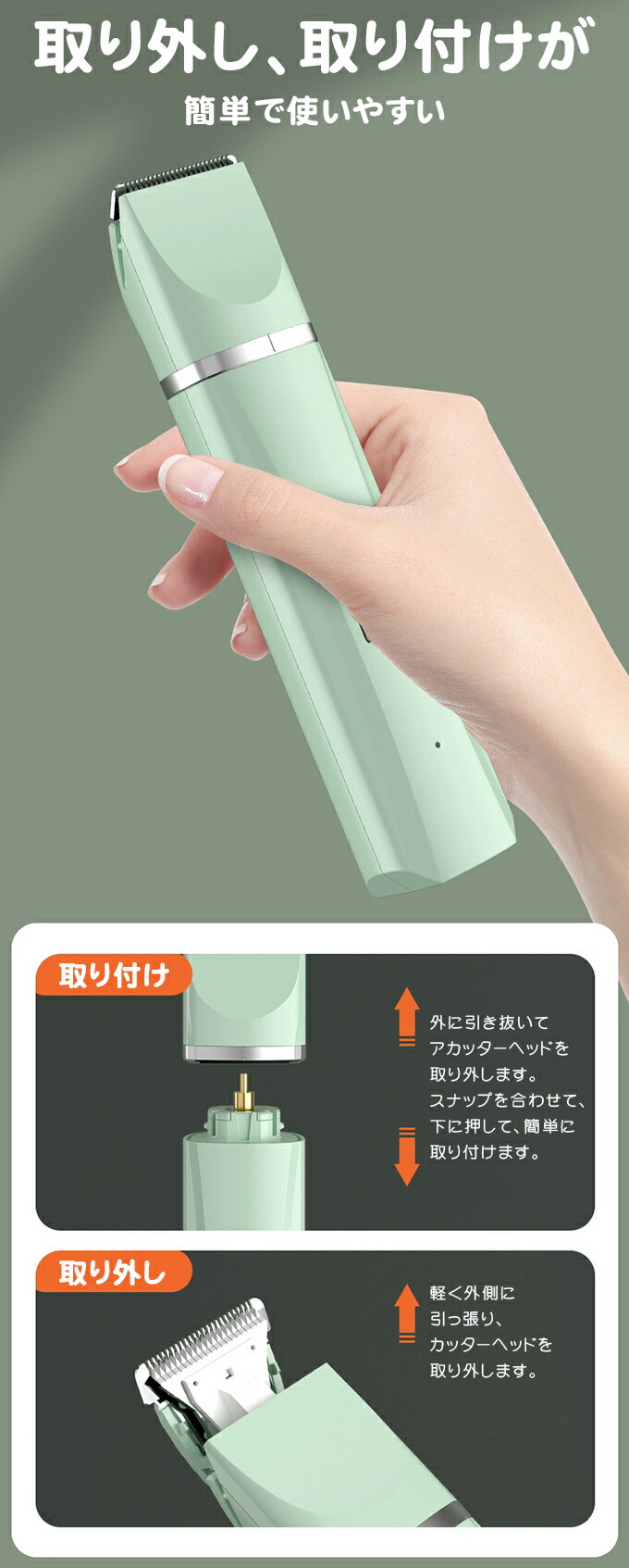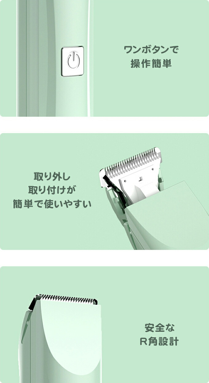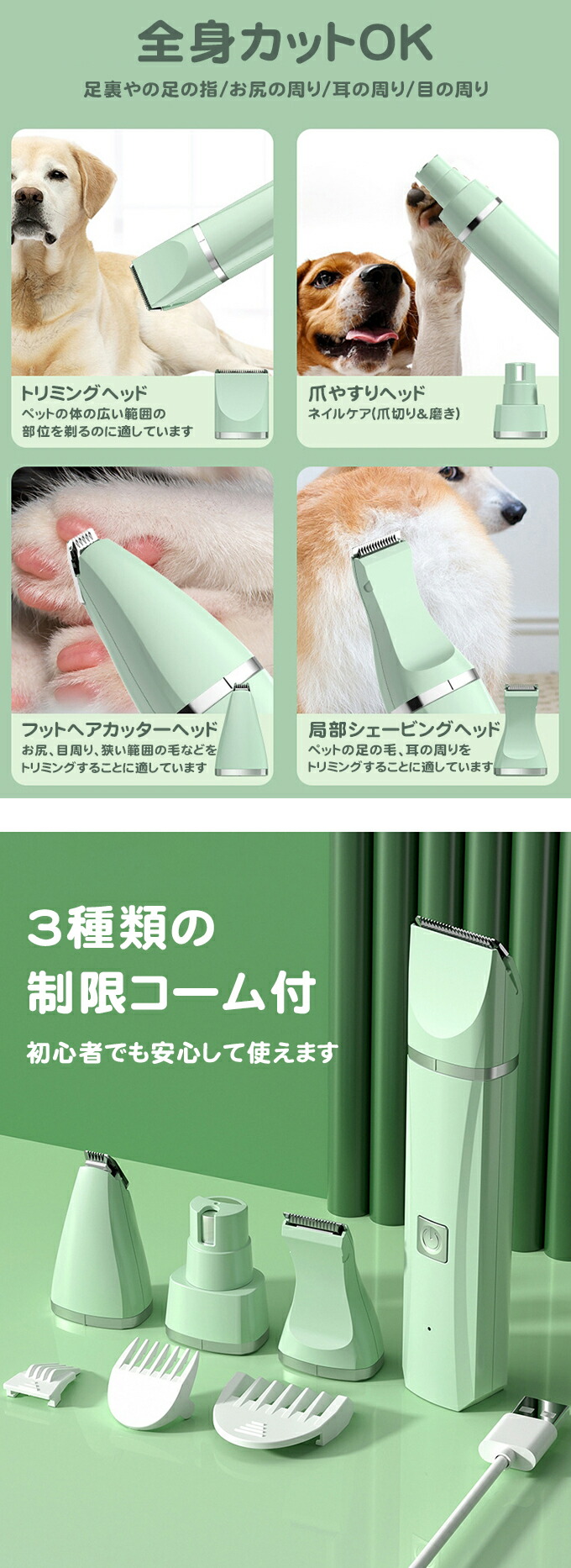 4IN1 USB充電式 ペット バリカ グリーン ホワイト