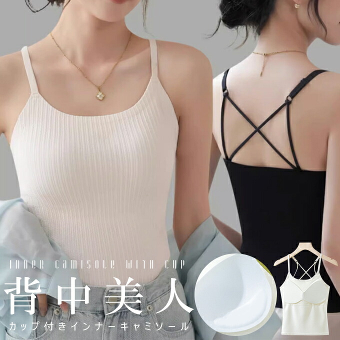 1枚で2役 背中美人 バッククロス カ レディースファッション 特集 ホワイト アイボリー ブラック Mサイズ Lサイズ XLサイズ 2XLサイズ 3XLサイズ