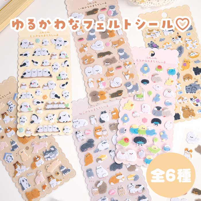 シール フェルトシール さらさら ボン 文房具 事務用品 ギフトラッピング用品 シール ステッカー 続々登場 1 2 3 4 5 6 まとめセット(各1種ずつ計6枚)