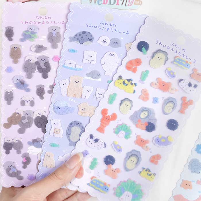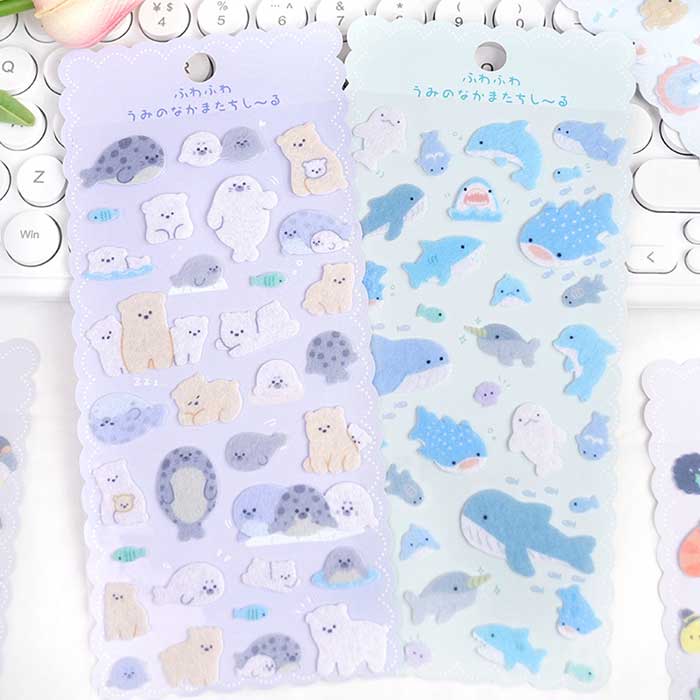 シール フェルトシール さらさら ぷっ 文房具 事務用品 ギフトラッピング用品 シール ステッカー 超目玉商品 1 2 3 4 5 6 まとめセット(各1種ずつ計6枚)