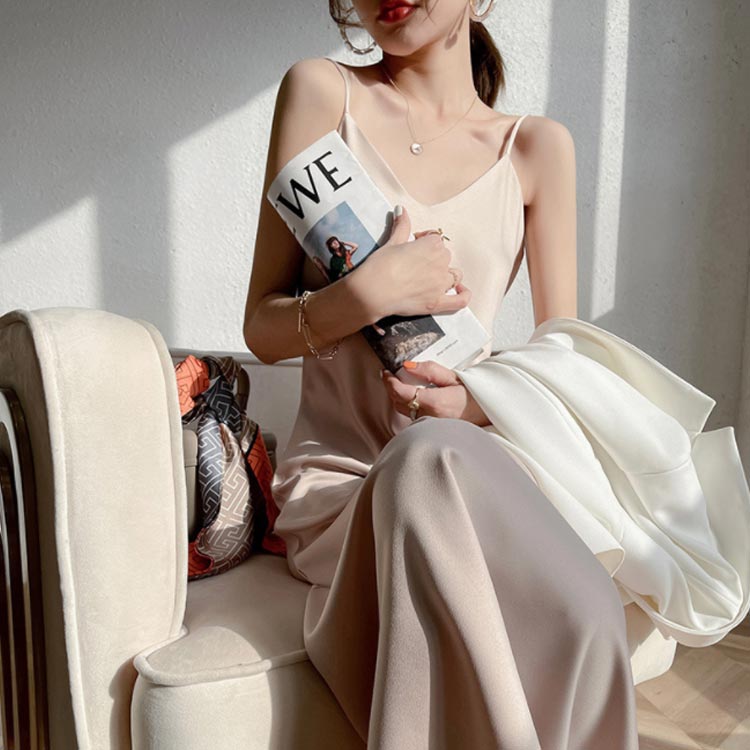 キャミソールワンピース ロング サテン レディースファッション 新登場! ホワイト ピンク ブラック ベージュ グリーン ブルー S M L XL 2XL 3XL