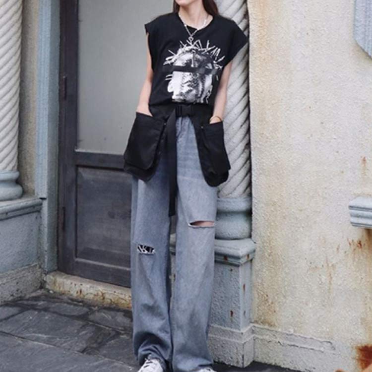 タンクトップレディースTシャツノースリーブUネックロゴプリント