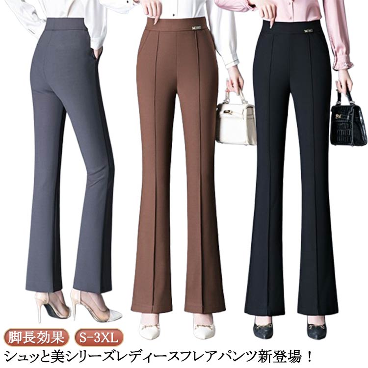 脚長効果 フレアパンツ パンツ フレア ボトムス パンツ 続々登場 ブラック コーヒー グレー S M L XL 2XL 3XL