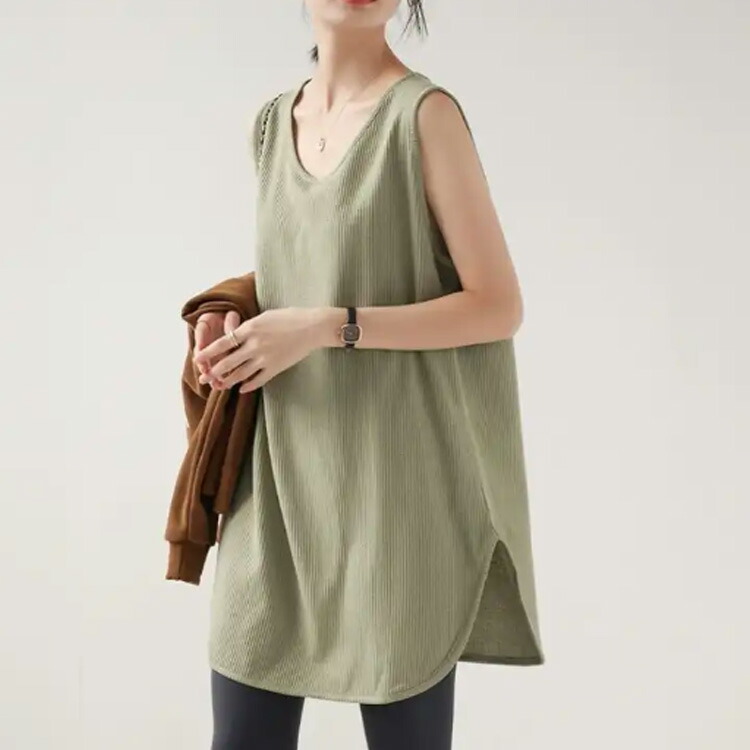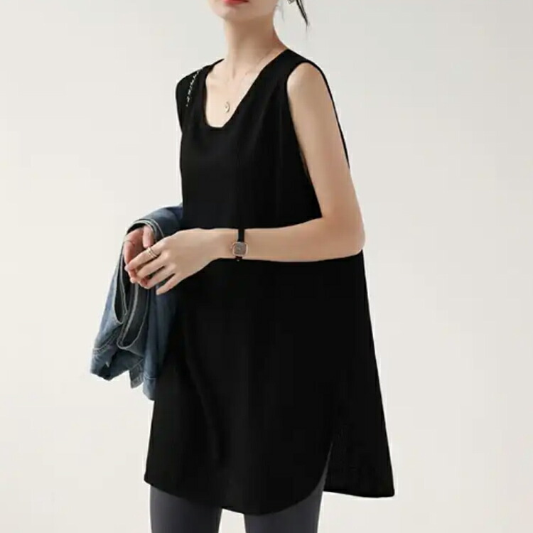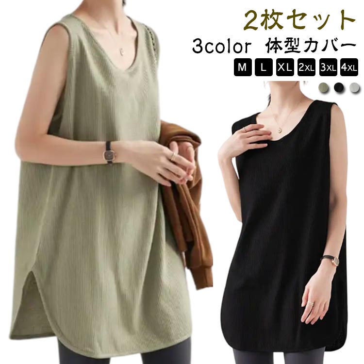 トップス ノースリーブ ロング丈 イン レディースファッション 豊富な品揃え グリーン+白 グリーン+黒 黒+白 グリーン+グリーン 白+白 黒+黒 M L XL 2XL 3XL 4XL