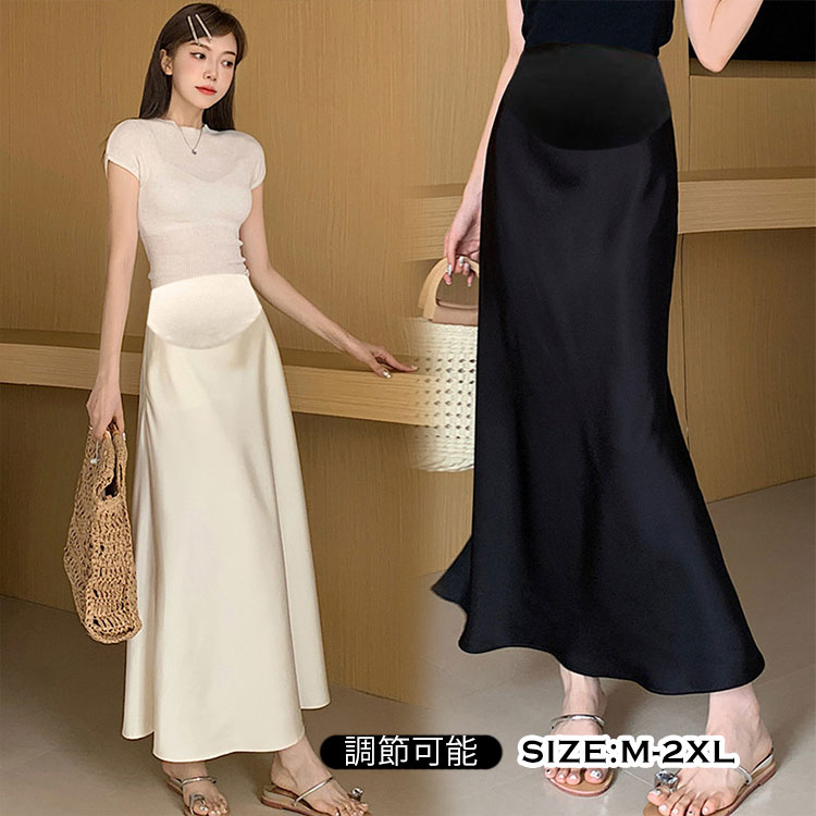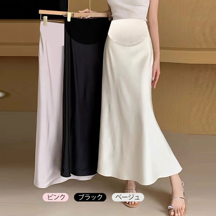 マタニティ ロングスカート サテンスカ マタニティ ママ マタニティウエア 授乳服 ボトムス スカート 続々入荷中 ブラック ベージュ ピンク M L XL 2XL