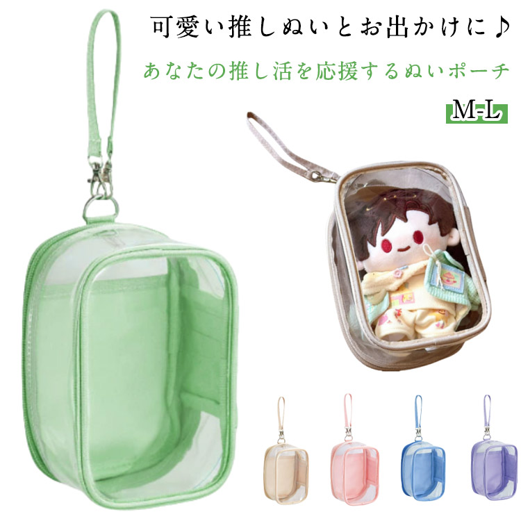 ぬいぐるみポーチ 推し活 15cm 1 バッグ レディースバッグ アクセサリーポーチ 通販 ベージュ ブルー ピンク グリーン 桜ピンク パープル M L
