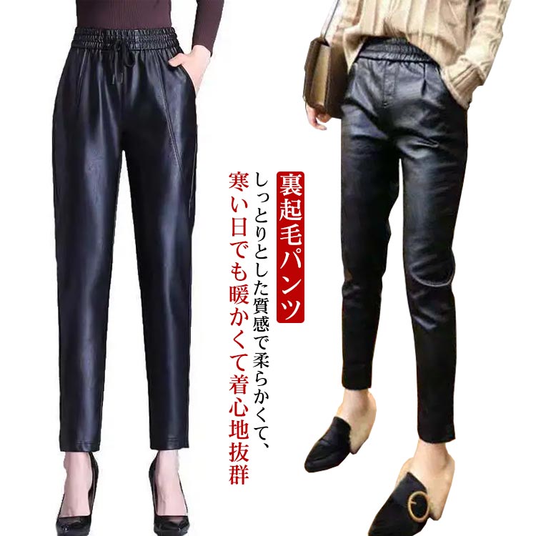 裏起毛パンツ フェイクレザー 合皮パン レディースファッション 新登場! 縄ある裏起毛 縄なし裏起毛 M L XL 2XL 3XL