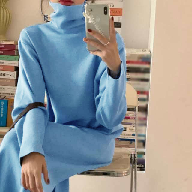 ハイネックインナーワンピース レディー レディースファッション 続々登場 ブラック ブラウン オフホワイト グレー ブルー S M L XL 2XL