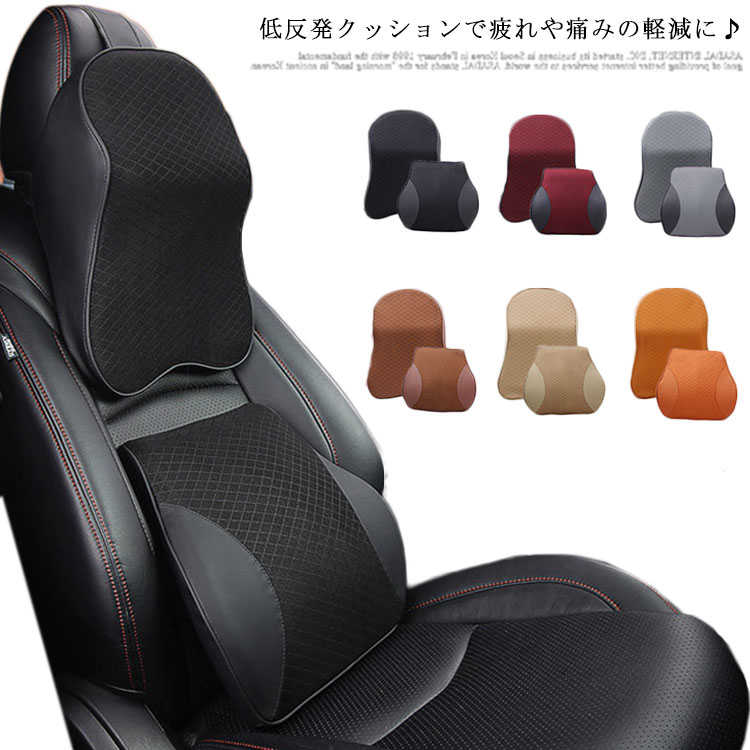 車用 低反発 クッション 首枕 腰枕 ブラック レッド ブラウン ベージュ オレンジイエロー グレー 首枕 腰枕