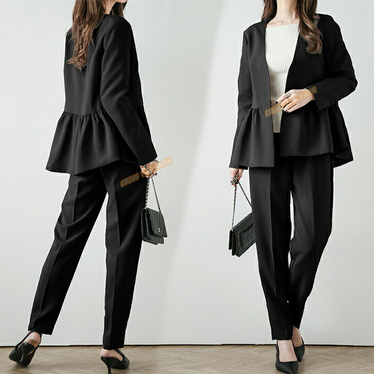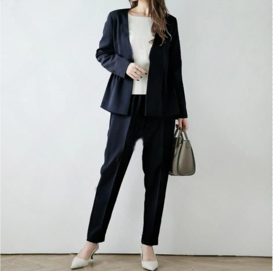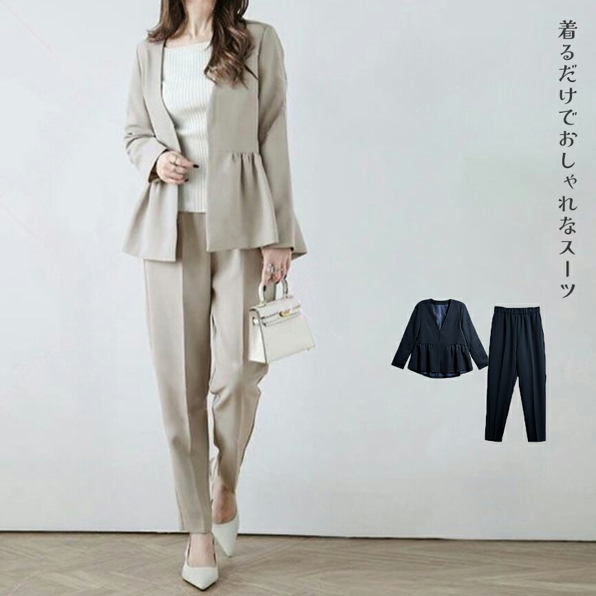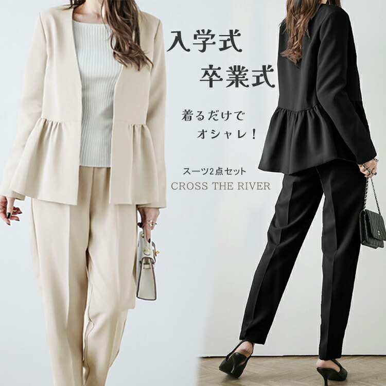 卒業式 スーツ パンツスーツ レディー スーツ セットアップ パンツスーツ 通販 ネイビー2点 ベージュ2点 ブラック2点 S M L