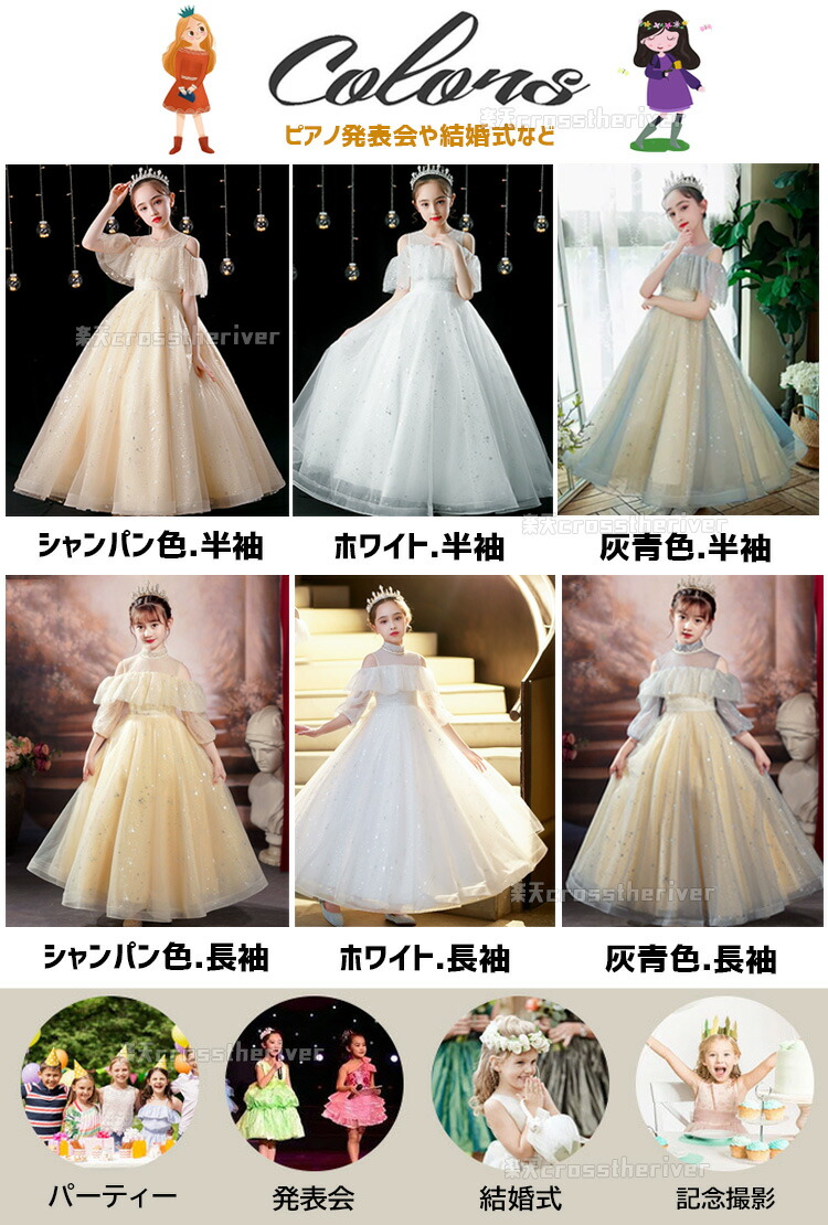 3色展開 子供 ドレス ピアノ発表会 キッズ ドレス 早い者勝ち ホワイト.半袖 灰青色.半袖 シャンパン色.半袖 ホワイト.長袖 灰青色.長袖 シャンパン色.長袖 110 120 130 140 150 160 170
