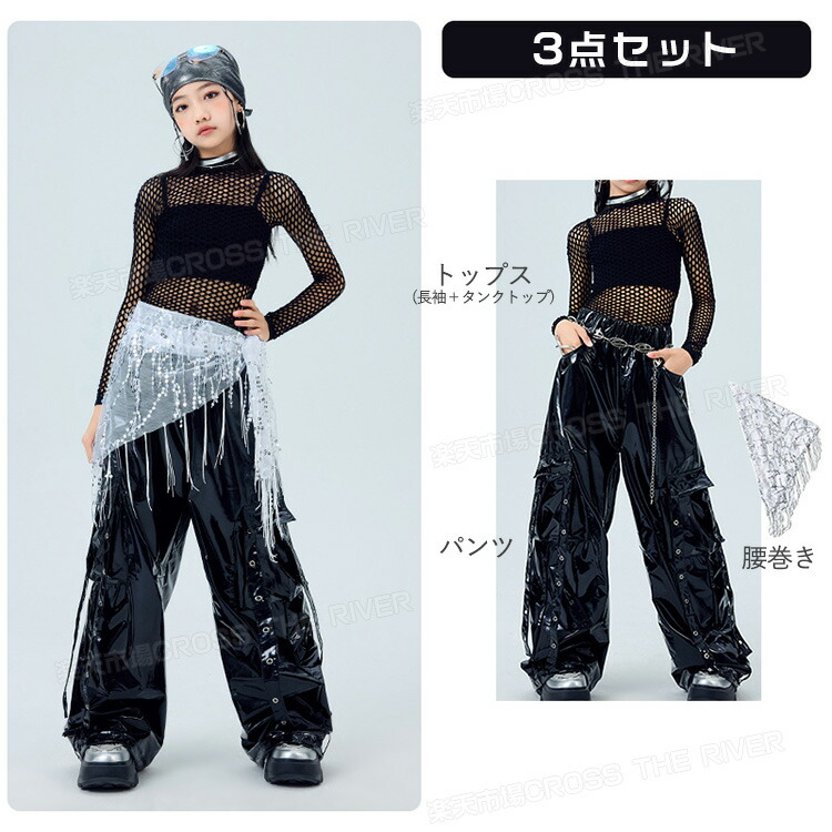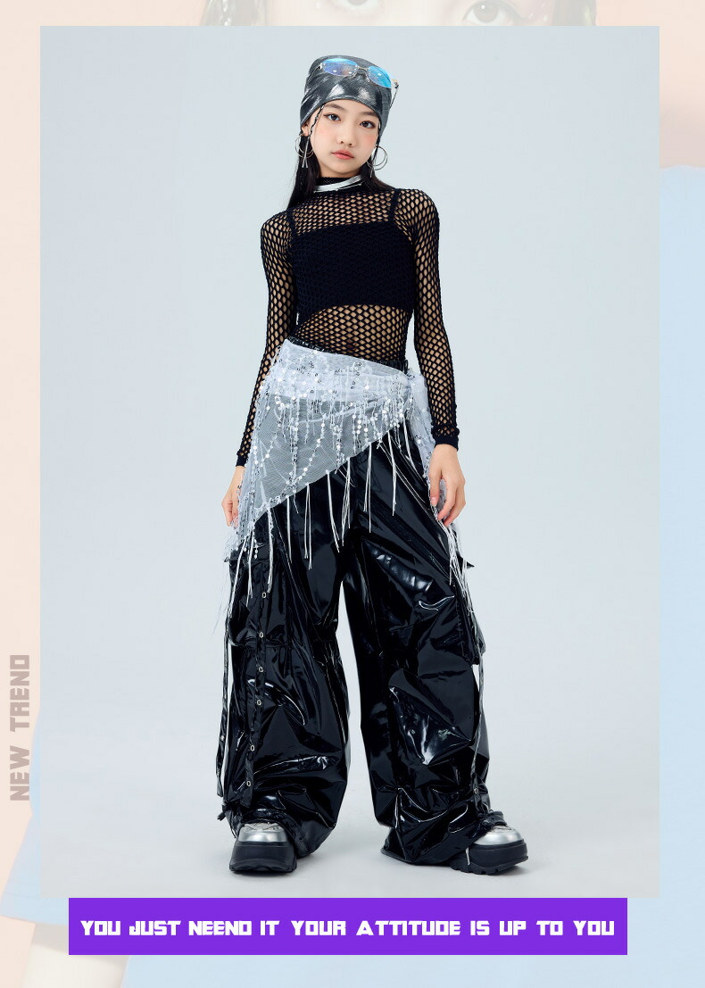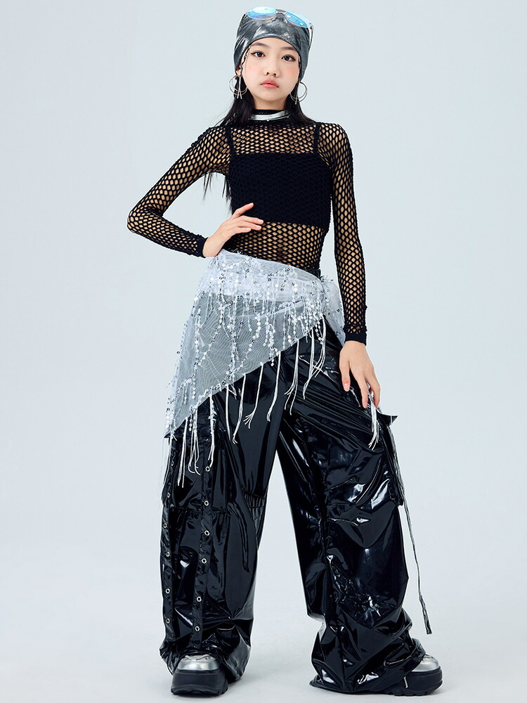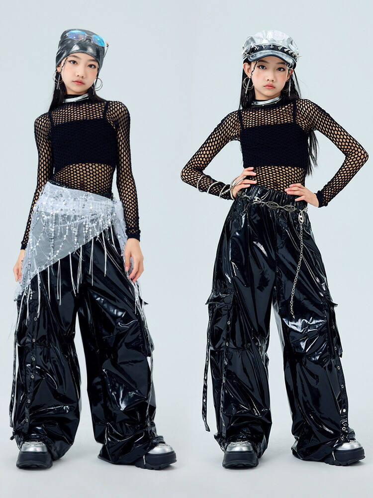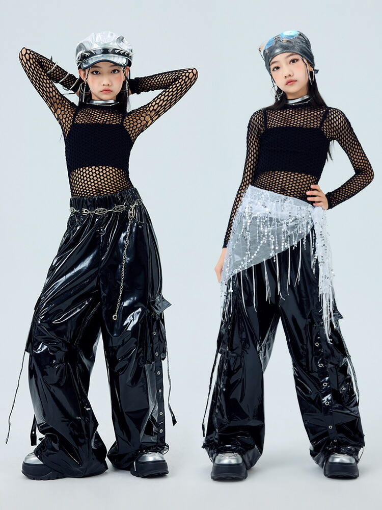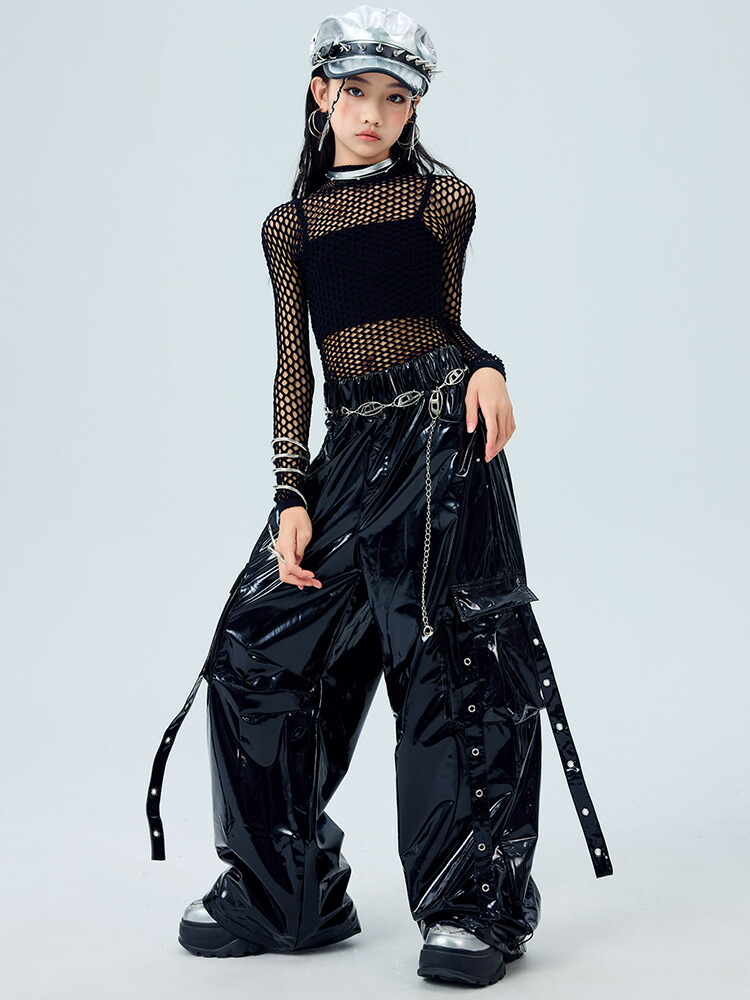 キッズ ダンス衣装 レザー カーゴパン 体操 ダンス 社交ダンス ウェア 人気 トップス単品 パンツ単品 トップス+パンツ 3点セット 110 120 130 140 150 160 170 180