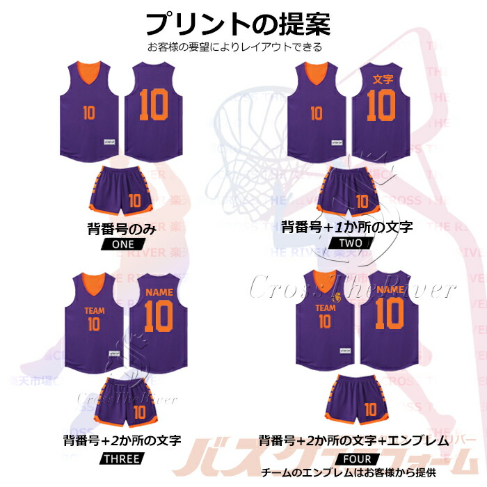 バスケットユニフォーム オーダー 上下 スポーツ アウトドア 新作 しないで無地 プリントの提案 ONE(両面) プリントの提案 TWO(両面) プリントの提案 THREE(両面) プリントの提案 FOUR(両面)