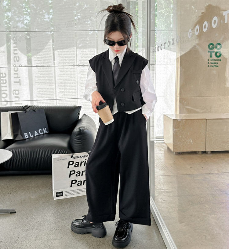 パンツスーツ 女の子 160 スーツ キッズ ベビー マタニティ 早い者勝ち ベスト+パンツ(ブラック) ベスト+パンツ(ブラウン) ブラック4点セット ブラウン4点セット 120 130 140 150 160 170