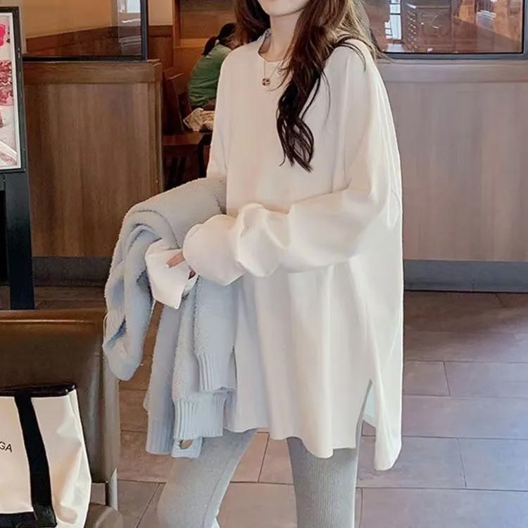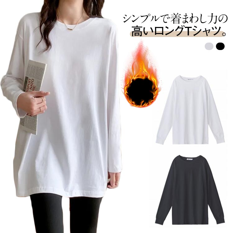 トップス シンプル レディース ロンT トップス Tシャツ カットソー 人気 ホワイト ブラック ホワイト(サイドスリット) M L XL 2XL 3XL