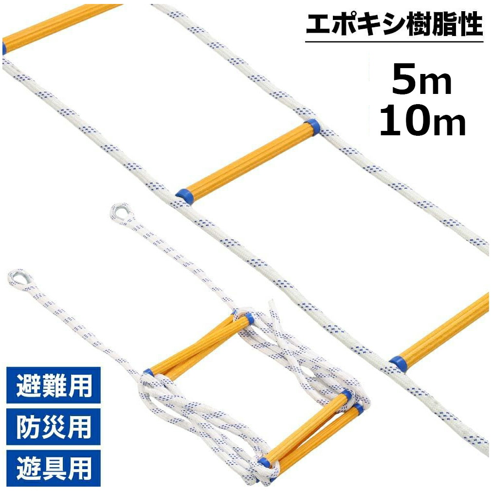 避難はしご 縄はしご 柔らかい 家庭用 オレンジ 5m オレンジ 10m