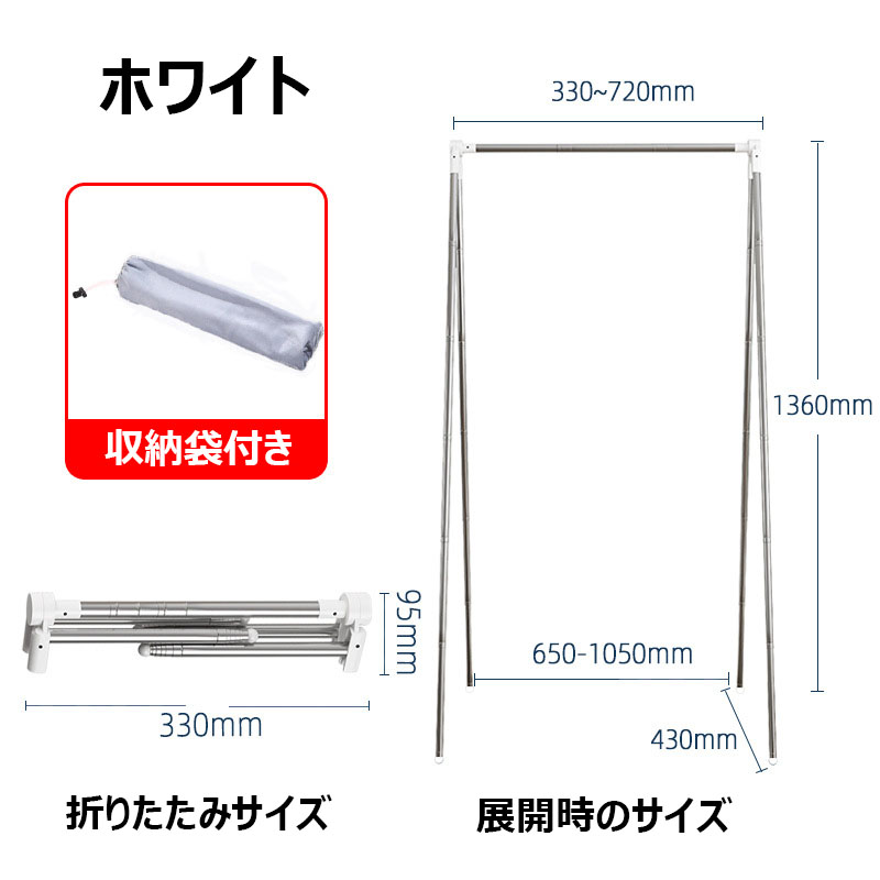 室内干し 折りたたみ 収納袋付き 組み 日用品雑貨 文房具 手芸 豊富な品揃え ホワイト ブルー ホワイト L