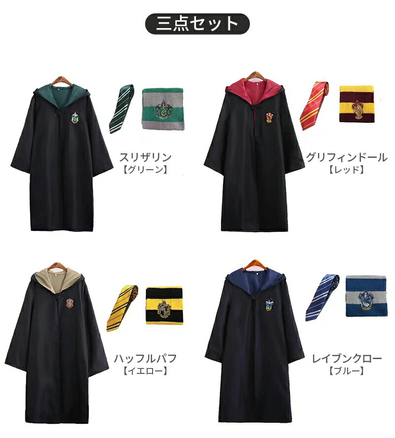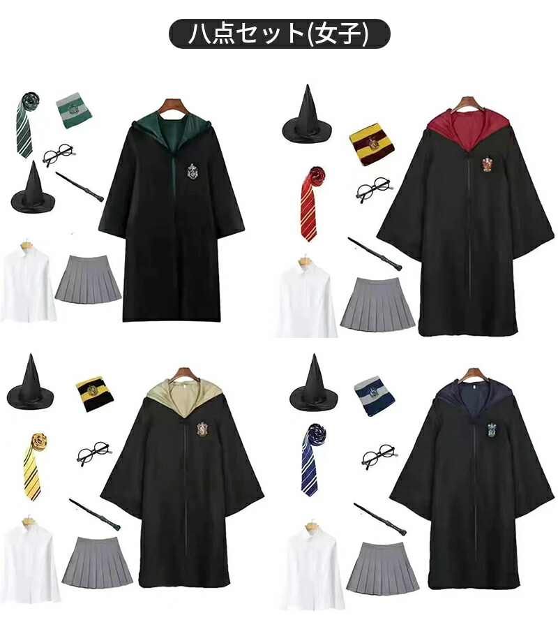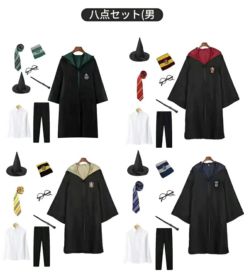 ハリーポッター コスプレ キッズ マン コスプレ 変装 仮装 コスチューム一式 超目玉商品 マントのみ 三点セット 五点セット 七点セット 八点セット(女子) 八点セット(男子) グリフィンドール【レッド】 スリザリン【グリーン】 レイブンクロー【ブルー】 ハッフルパフ【イエロー】