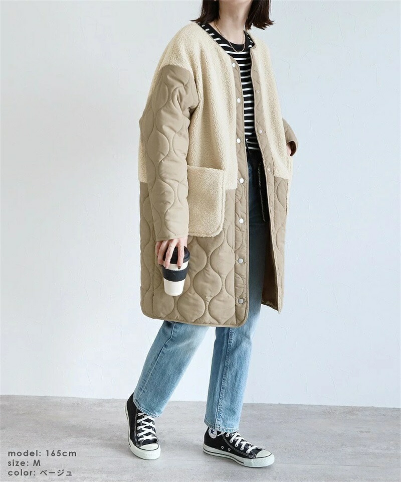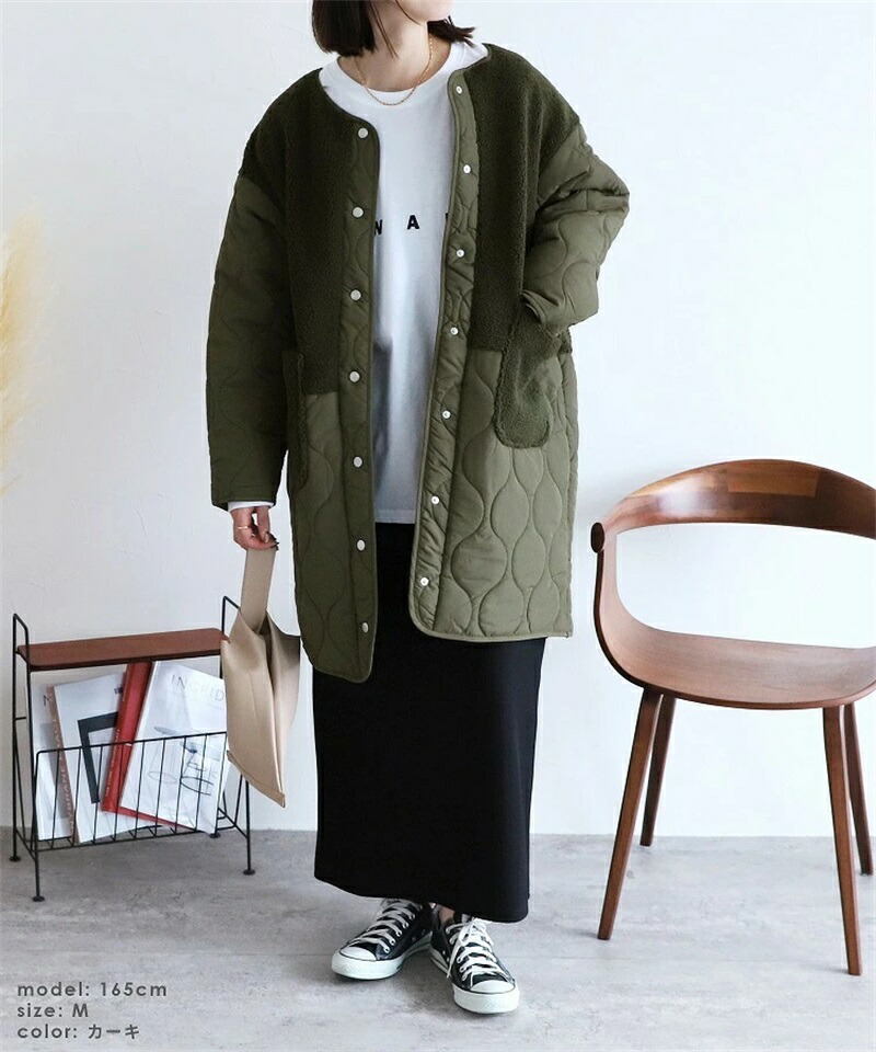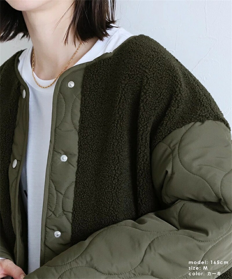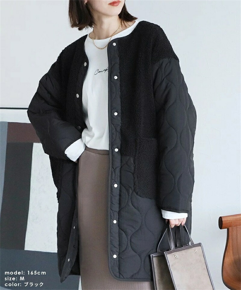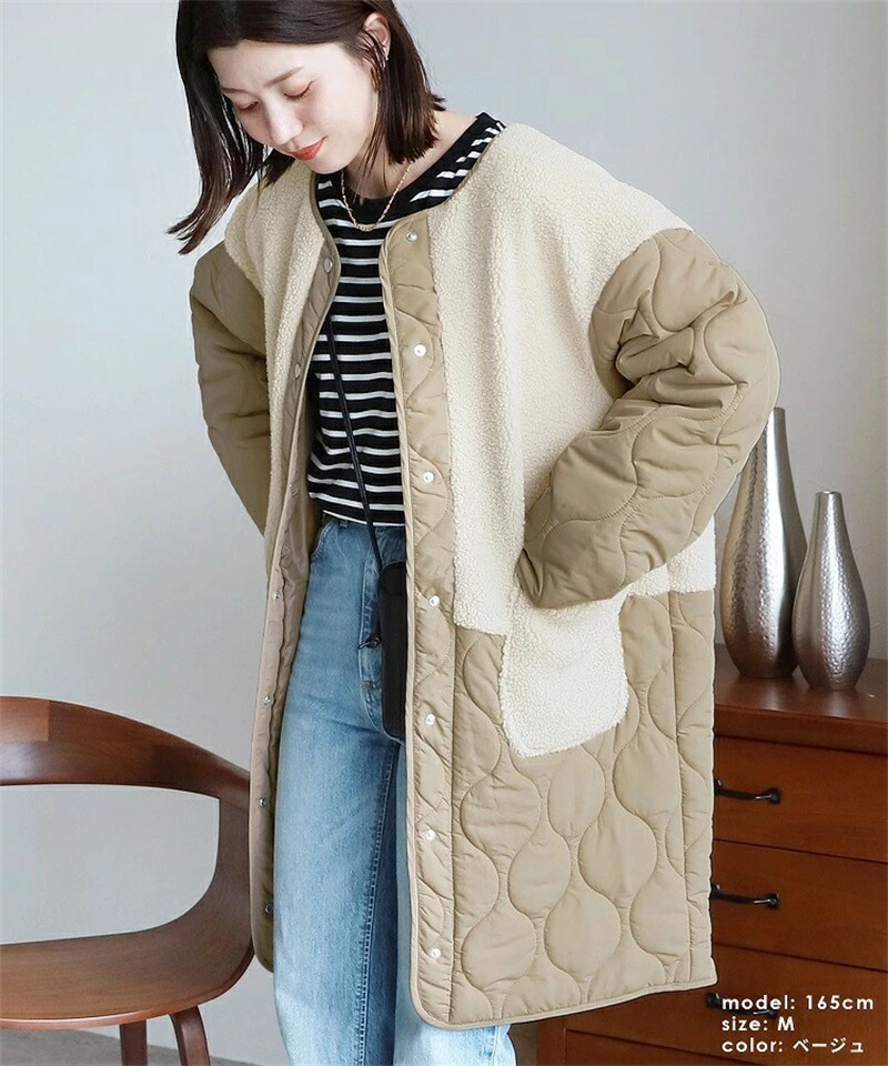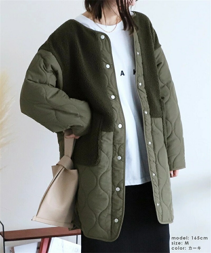 ボア キルトコート レディース 切り替 コート ジャケット 豊富 ブラック カーキ ベージュ
