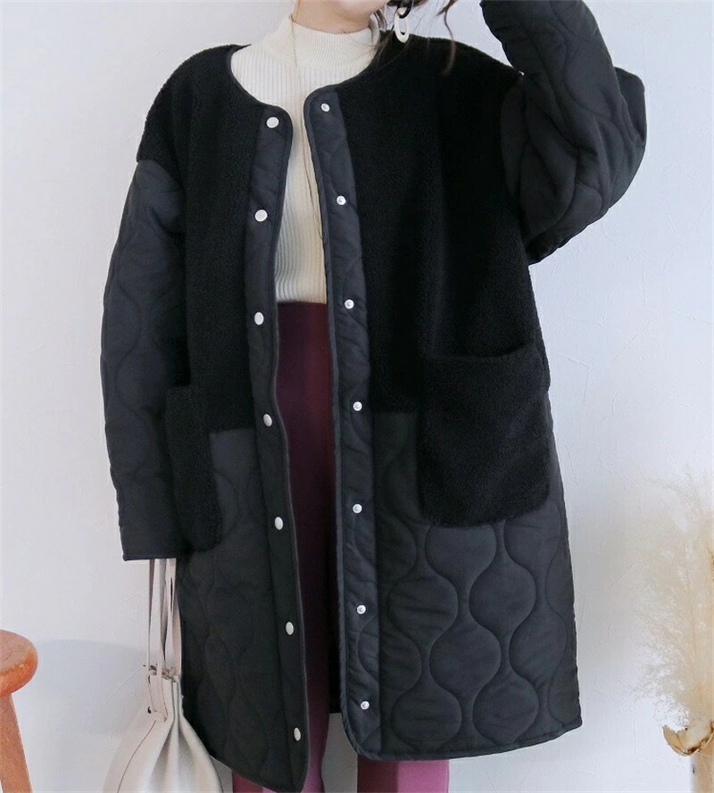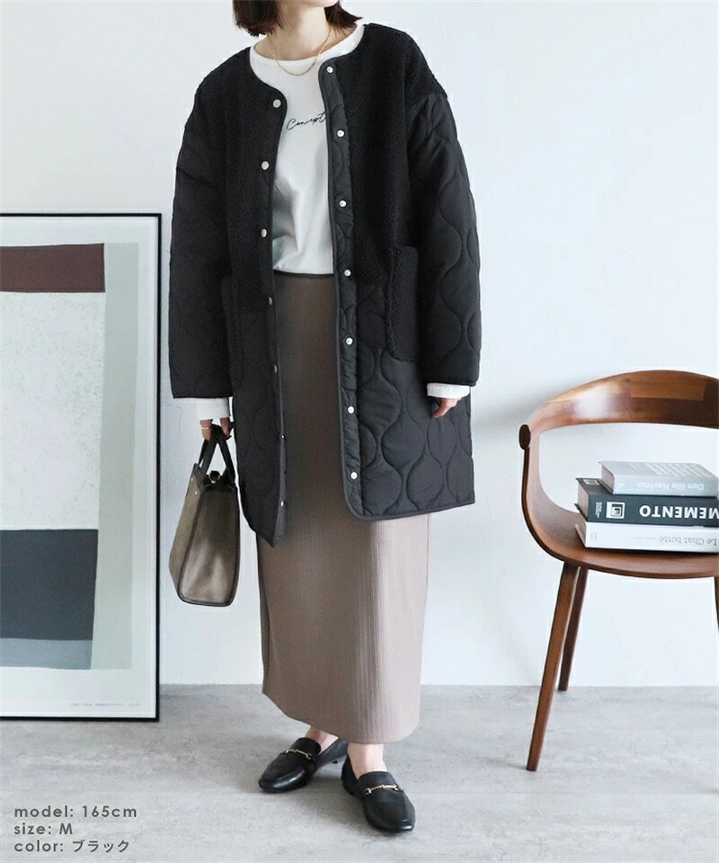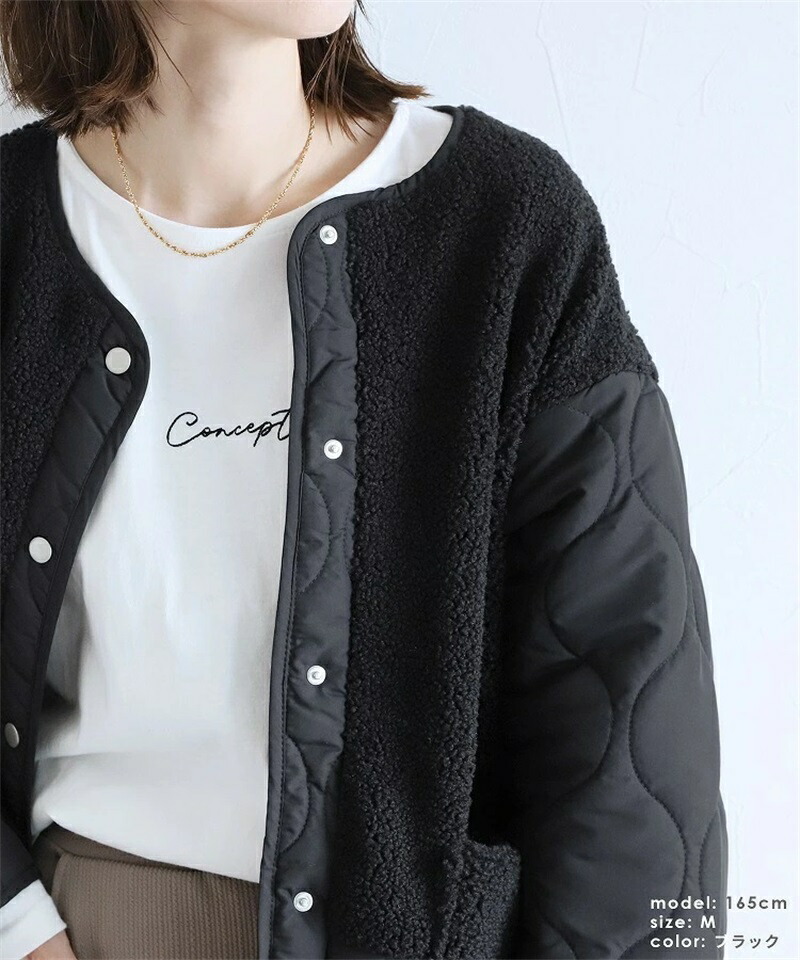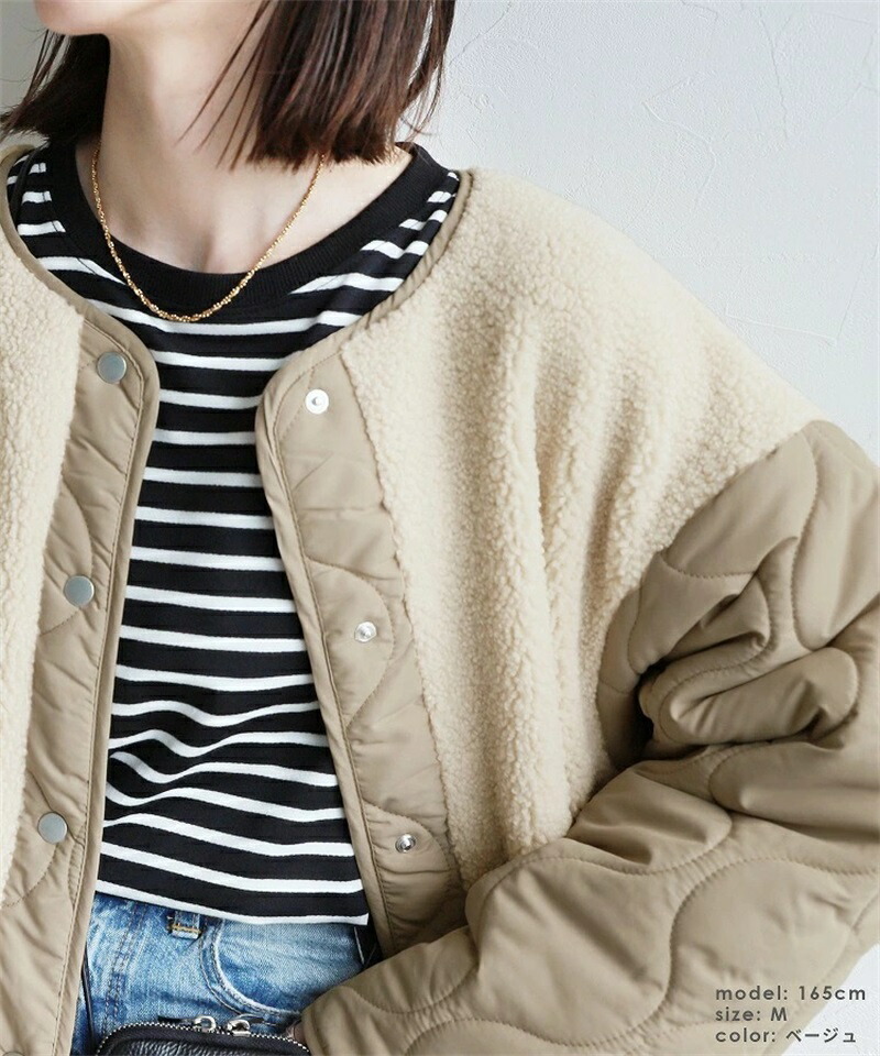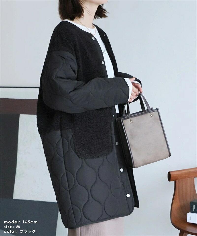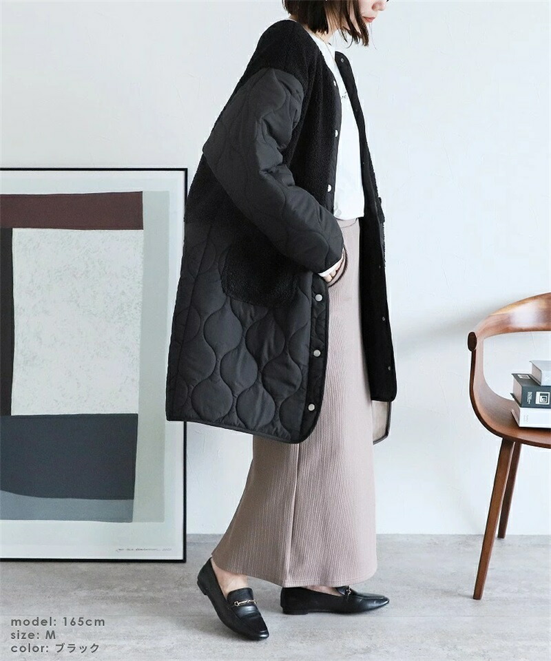 ボア キルトコート レディース 切り替 コート ジャケット 豊富 ブラック カーキ ベージュ