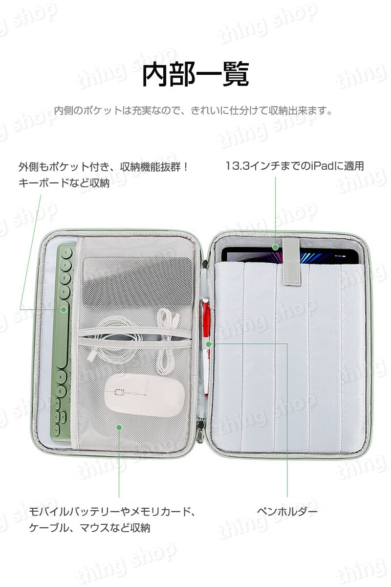 10.8-13インチ タブレットケース グリーン ホワイト ネイビー ブラック ダークグレー 10.8-11インチ 12.9-13インチ