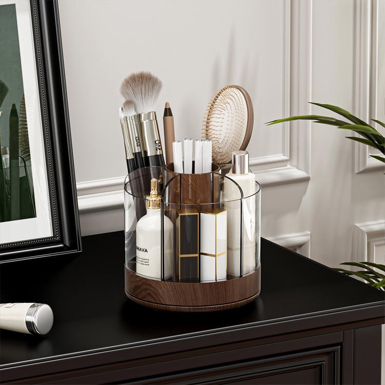 メイクブラシ立て 回転 大容量 ペンス 日用品雑貨 文房具 手芸 続々入荷中 ブラウン ベージュ