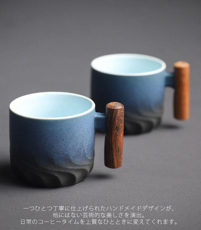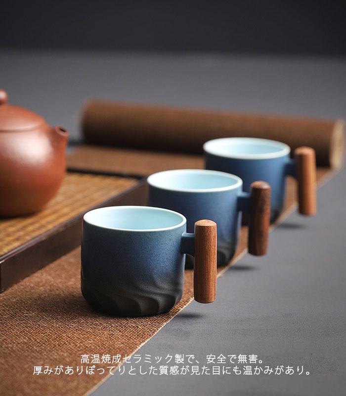 湯呑み コーヒーカップ 木取っ手付 き キッチン用品 食器 調理器具 豊富 ブルー グリーン ブラック ホワイト 1個入り 3個入り 5個入り