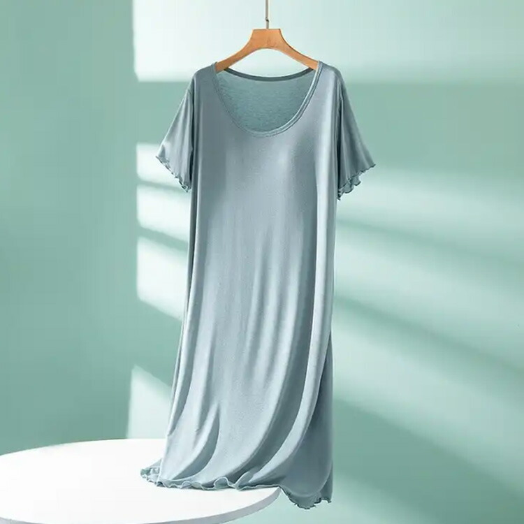 カップ付き パジャマ 半袖 ナイトウエ ブラック グレー ブルー ピンク ベージュ グリーン パープル M L