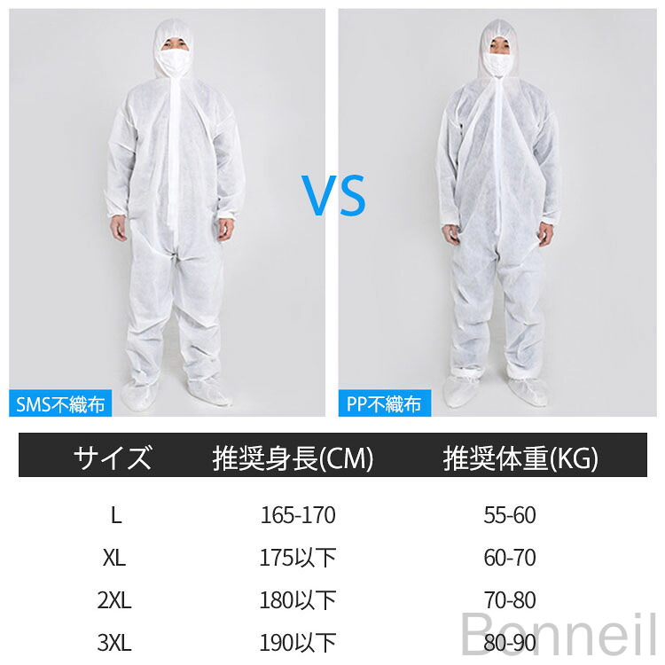 50枚入り 使い捨て防護服 保護服 作 ホワイト ブルー XL 2XL 3XL