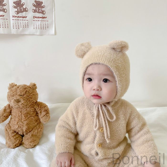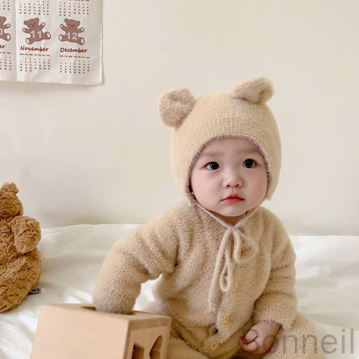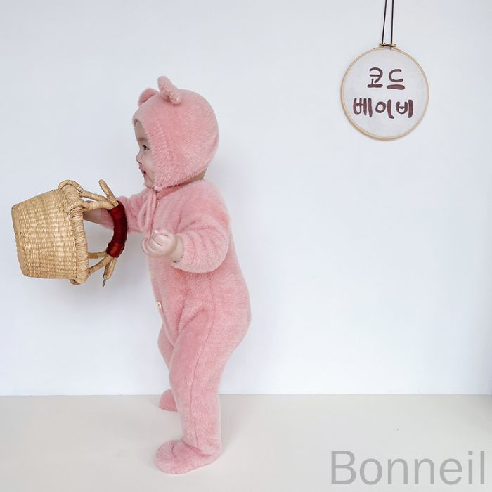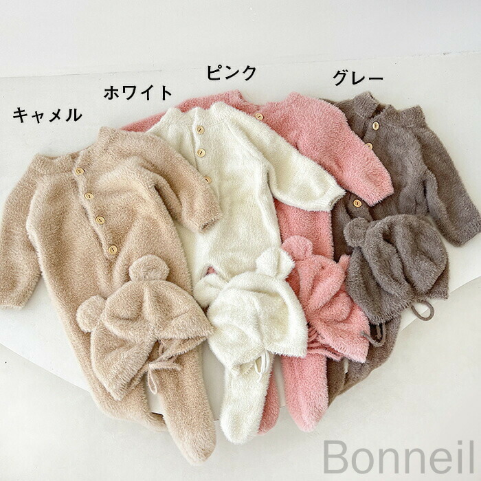 8 24迄 くまちゃん着ぐるみ熊耳付き キッズ ベビー マタニティ 通販 ピンク グレー キャメル ホワイト 66 73 80 90 100