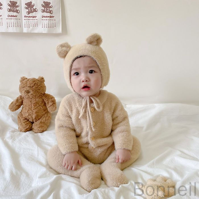 8 24迄 くまちゃん着ぐるみ熊耳付きロンパース動物ジャンプスーツベビーキッズカバーオールベビー服ロンパースジャンプスーツ女の子男の子帽子付きコスチューム着ぐるみベビーダウンコート可愛い