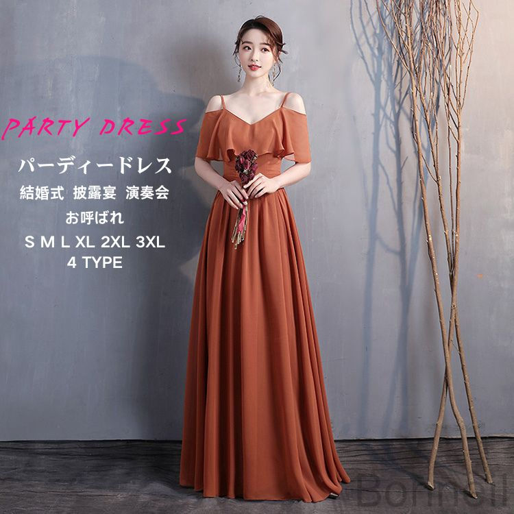 オレンジドレス カラードレス 二次会 レディースファッション 新作 A B C D S M L XL 2XL 3XL
