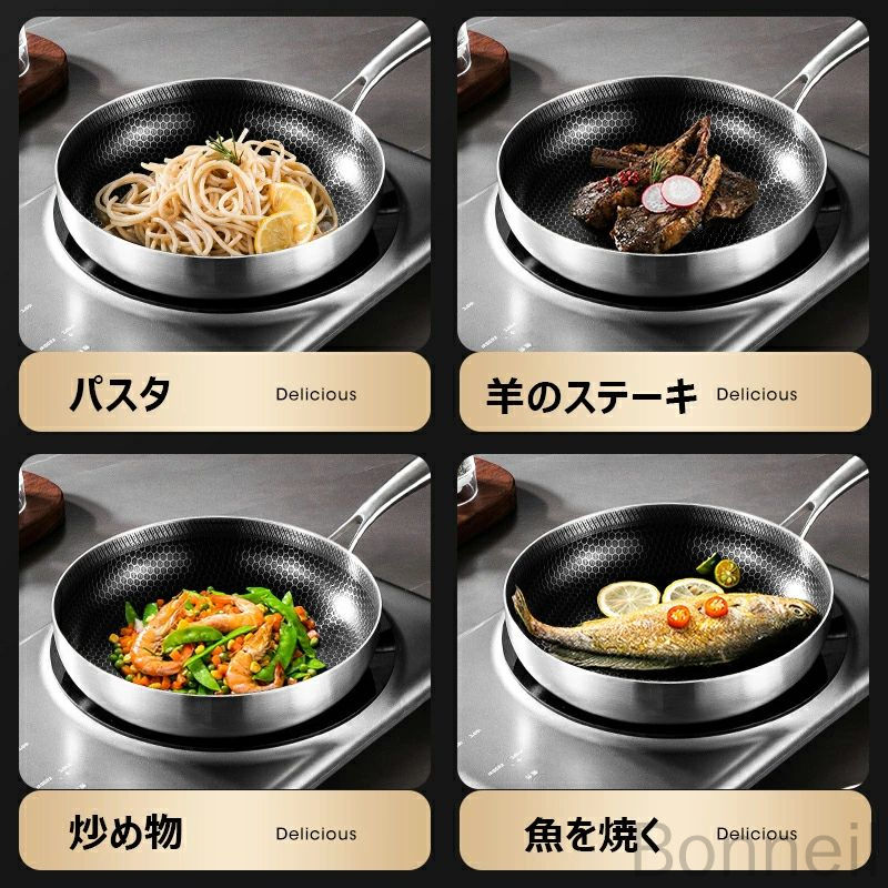 ステンレスフライパン 22cm 24c ハニカム式 蓋なし 辺がある 蓋なし 辺がない 蓋なし ハニカム式 蓋付き 辺がある 蓋付き 辺がない 蓋付き 22cm 24cm 26cm 28cm 30cm