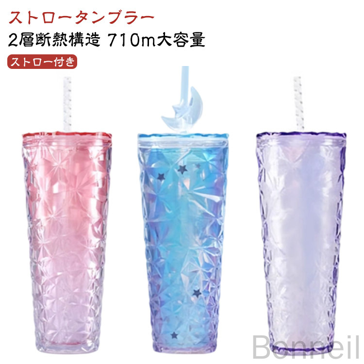 ストロー付きタンブラー 710ml 大 キッチン用品 食器 調理器具 続々入荷中 レッド レインボー ピンク パープル ブルー