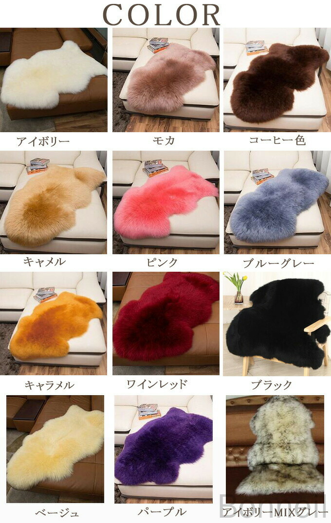 ムートンラグ 60×90cm 一匹物 日用品雑貨 文房具 手芸 豊富 アイボリー ブルーグレー ベージュ モカ キャラメル アイボリーMIXグレー キャメル コーヒー色 ブラック ワインレッド ピンク パープル 約60×長さ90cm 約70×長さ200cm