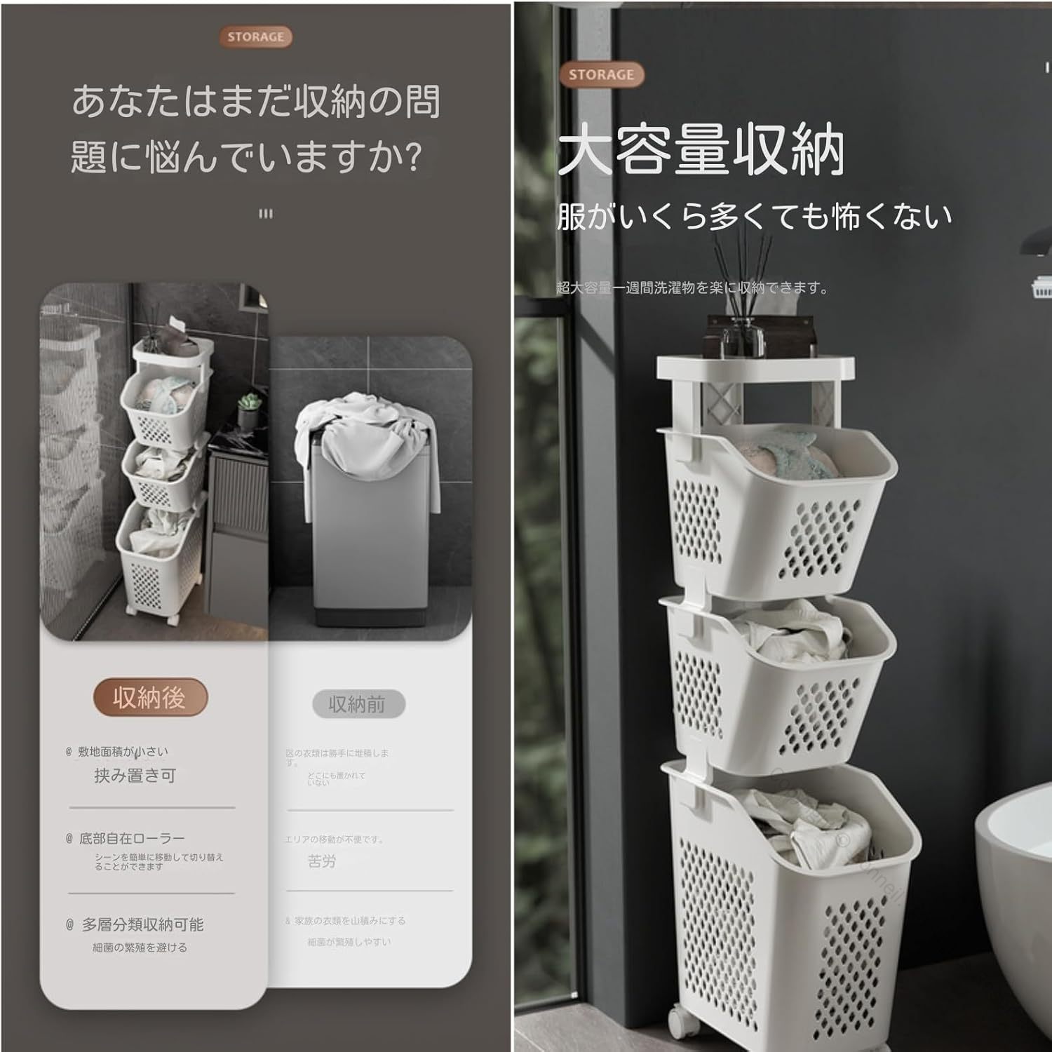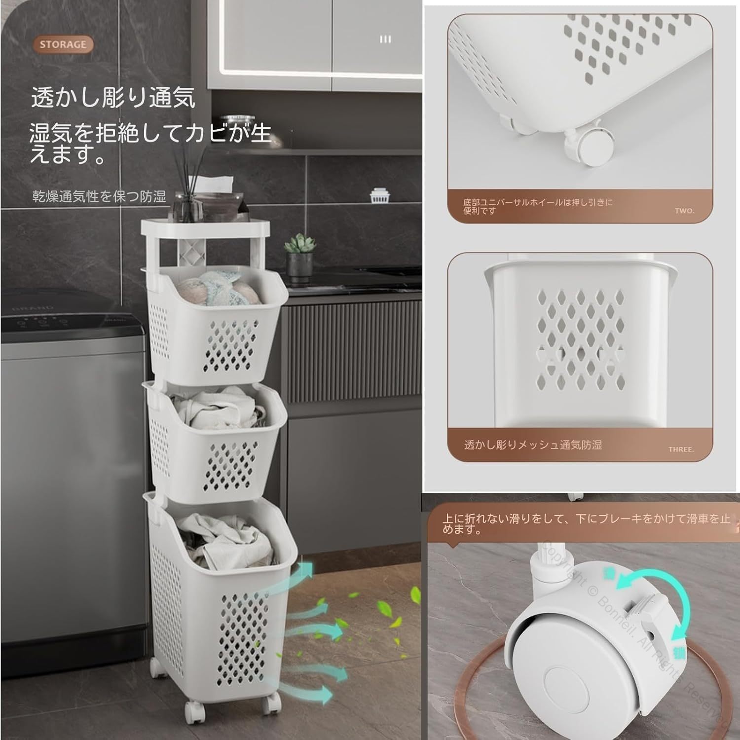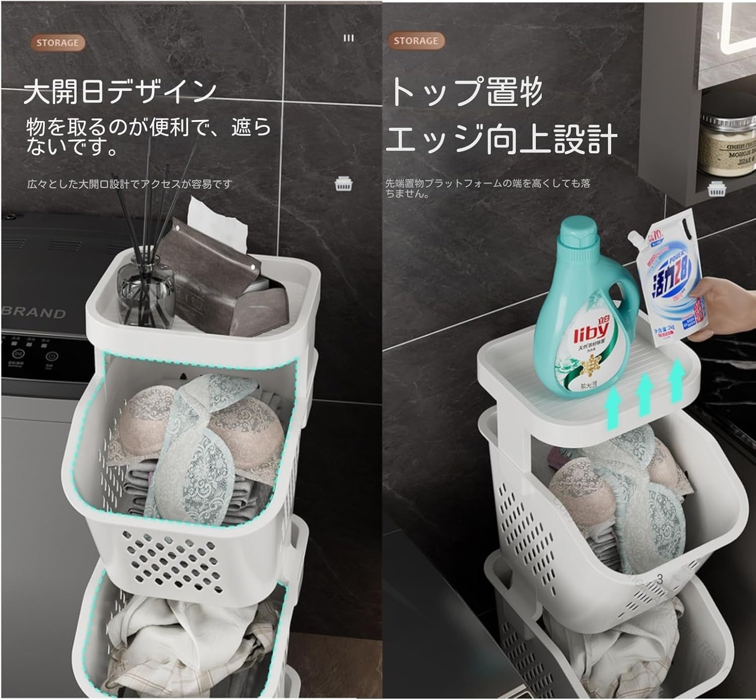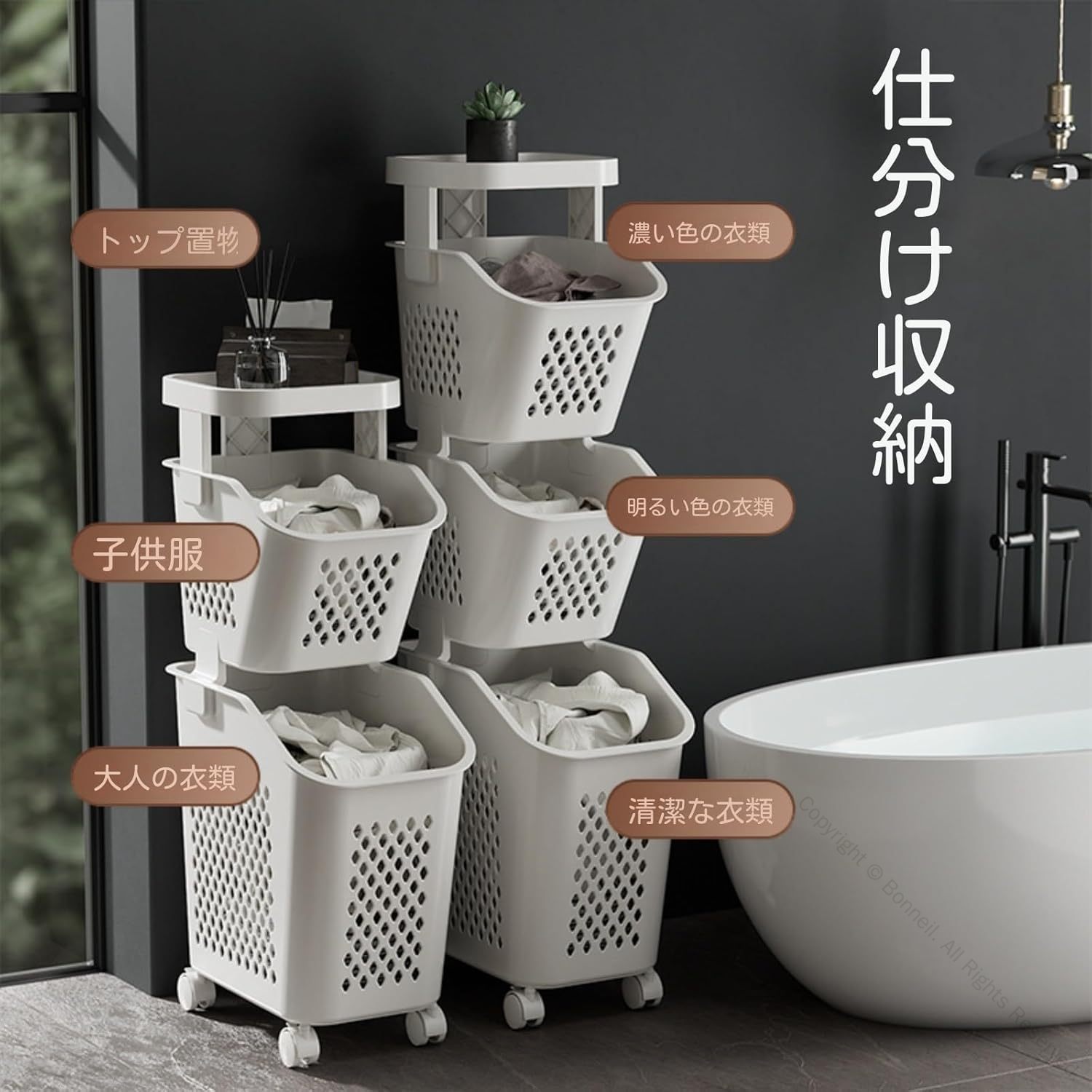 ランドリーバスケット 1段2段3段4段 ホワイト1段 ホワイト2段 ホワイト3段 ホワイト4段