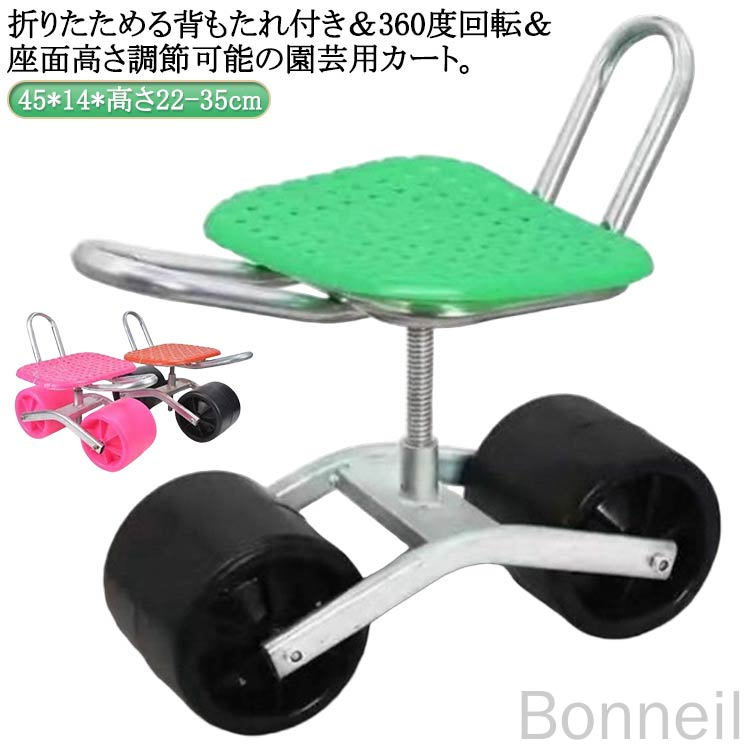農作業 椅子 車輪付き 360°回転 背もたれ付き 座面 高さ調節 腰掛け キャスター付き ガーデニングカート 座れる 園芸用カート ガーデンカート 腰掛け台車 畑仕事 横移動 台車 作業 作業カート