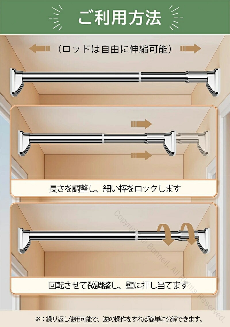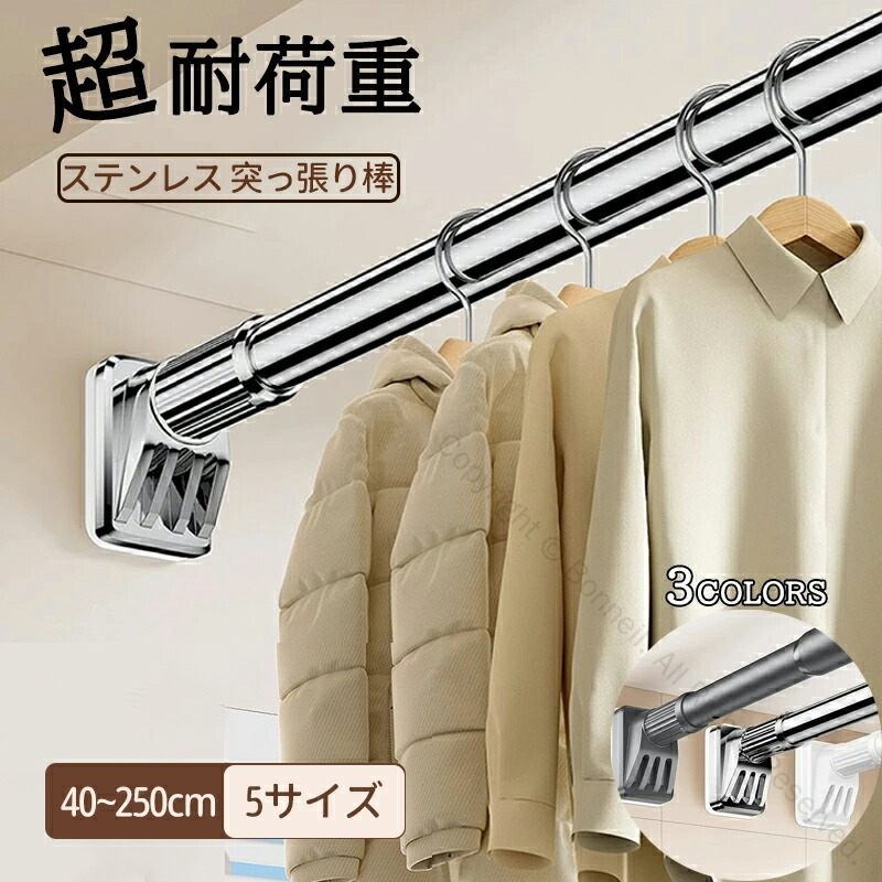 収納革命 圧倒的強度 ステンレス製突っ シルバー ホワイト ブラック 40-55cm 50-75cm 70-120cm 110-190cm 160-250cm