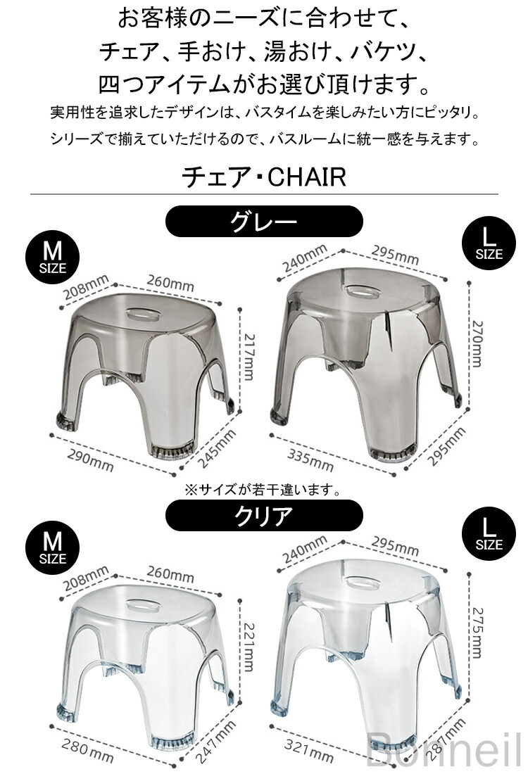 2024最新版 注文殺到中 再再再入荷 バス用品 イス 新登場! チェア[グレー] - Mサイズ チェア[グレー] - Lサイズ チェア[クリア] - Mサイズ チェア[クリア] - Lサイズ バケツ[グレー] バケツ[クリア] 湯おけ - Sサイズ 湯おけ - Mサイズ 湯おけ - Lサイズ 手おけ[グレー] 手おけ[クリア]